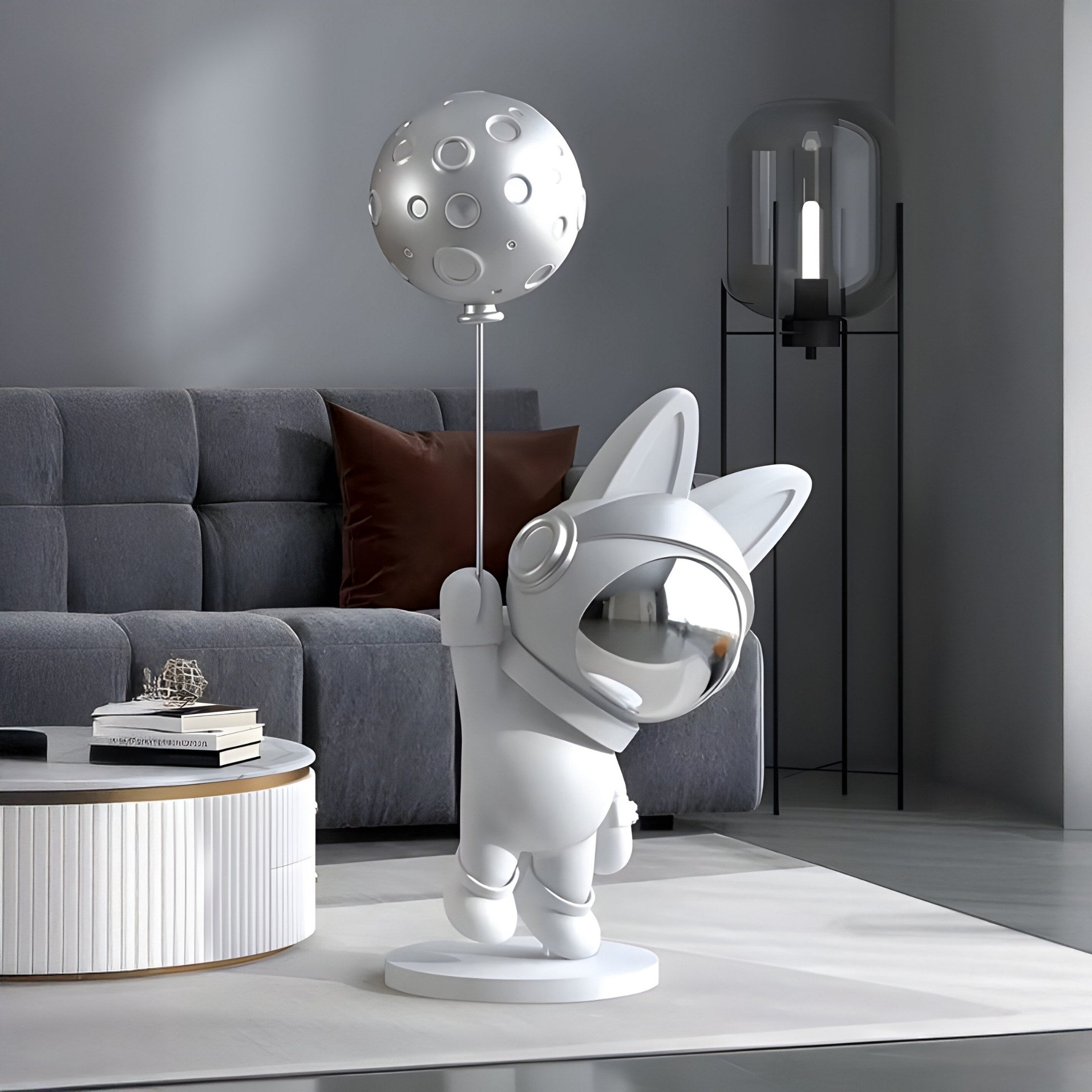 Designed for indoor display, this 150cm figure can fit comfortably in living rooms, spacious hallways, or creative offices. The chrome surface pairs well with various décor styles, adding a dash of otherworldly intrigue to modern or eclectic settings. Placing it near a window or under a spotlight emphasises the balloon’s textured pattern and the bunny’s reflective helmet, creating a subtle glow. If you have other space-themed items, this piece can serve as a unifying element, though it’s equally capable of standing alone as a playful focal point. Thanks to the resin construction, it’s both sturdy and easy to maintain, ensuring long-term enjoyment. By blending the whimsy of a bunny figure with the allure of outer space, the Cosmic Chrome Astronaut Bunny Moon Balloon Sculpture encourages us to dream beyond the everyday, reminding us that a sense of wonder can be found just around the corner, or perhaps on another planet entirely.