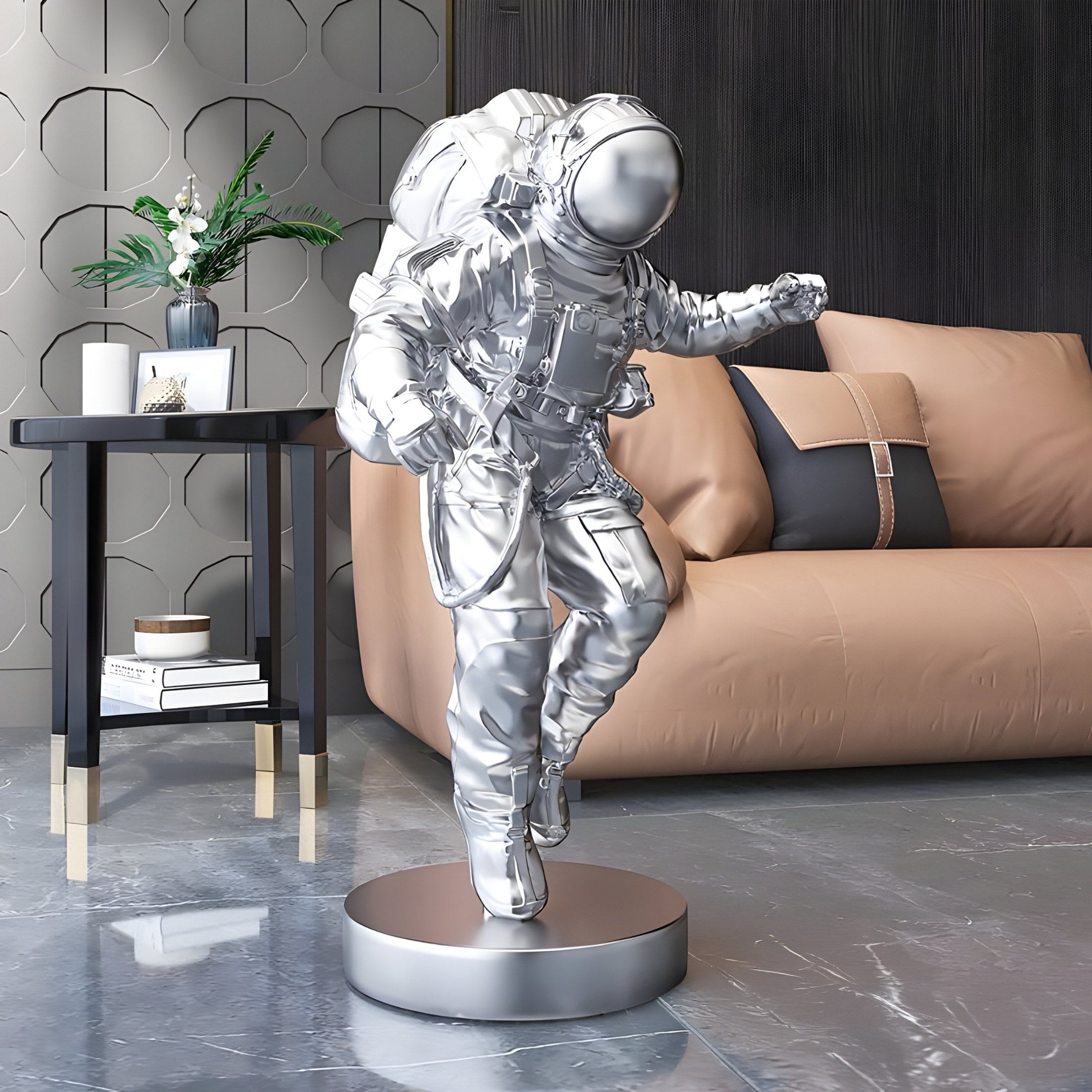 Chrome Astronaut Explorer Sculpture - A Bold Indoor Accent