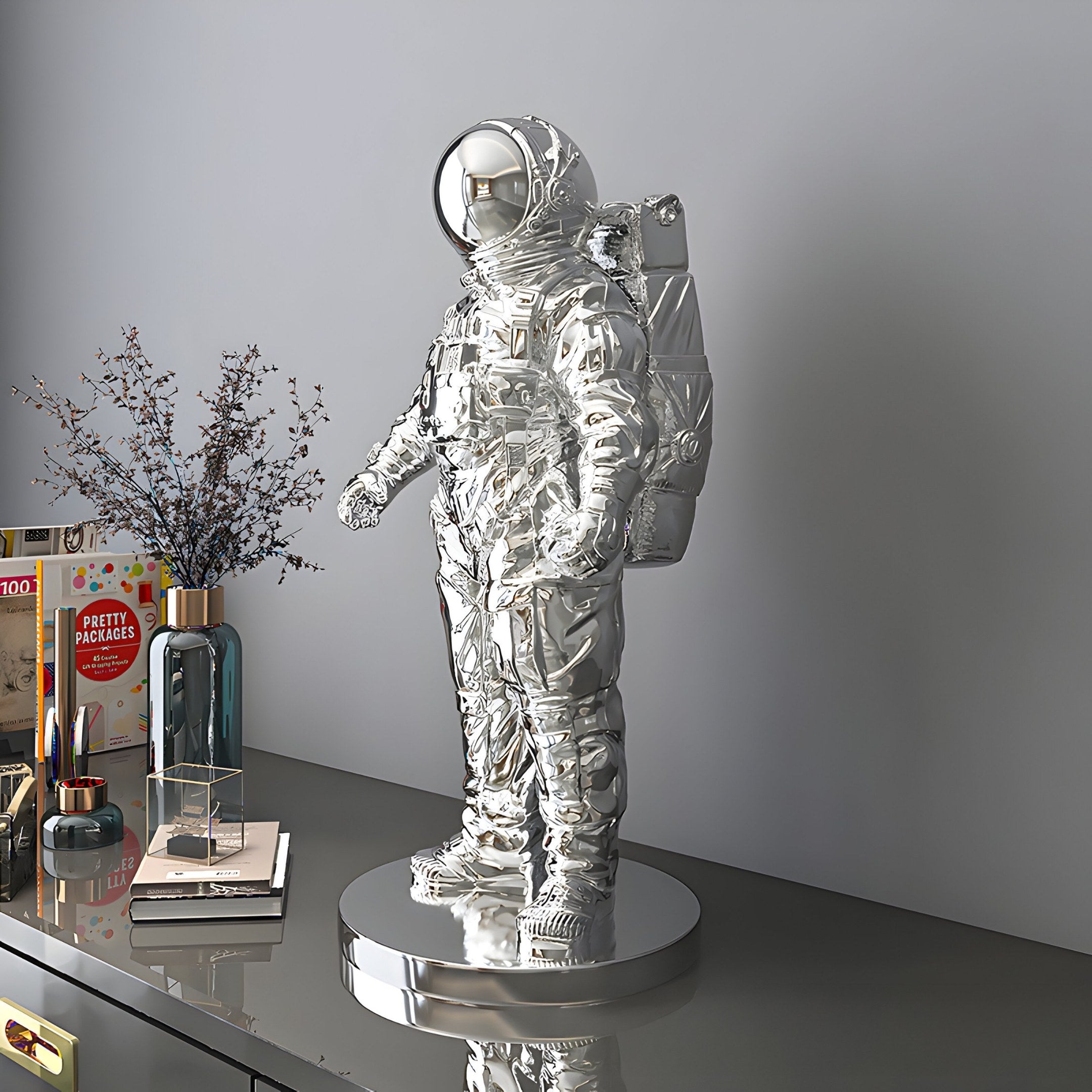 Chrome Astronaut Standing Sculpture - A Cosmic Indoor Accent