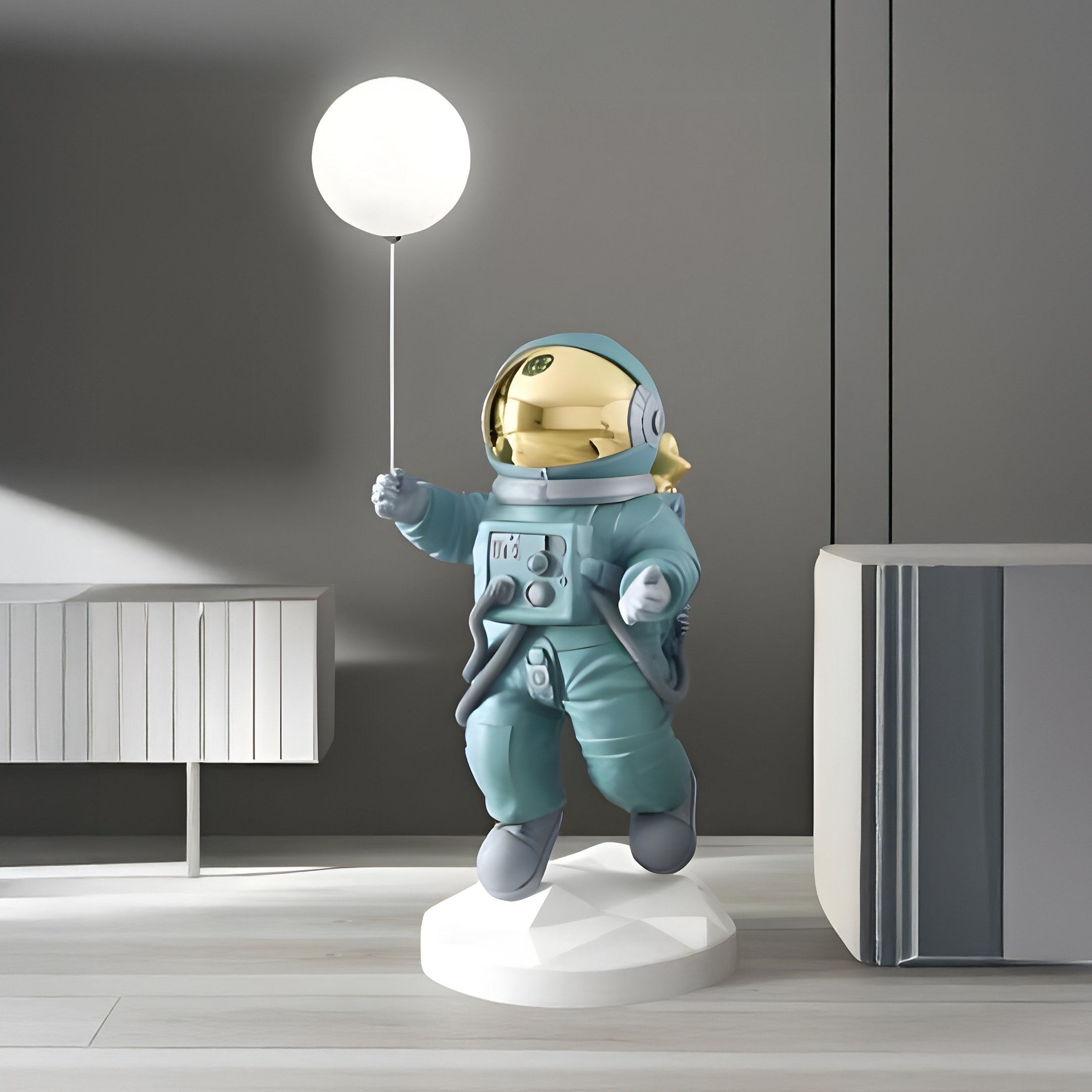 Enhance your interior with the Galactic Blue Astronaut Ranger Glow Balloon Sculpture 120cm. This impressive statue presents a cosmic blue spacesuit adorned with intricate tubing, pockets, and a striking gold visor. A glowing balloon hovers above the astronaut’s helmet, lighting up in four distinct colours: white, green, pink, and blue. Built from sturdy resin, it rests on a crisp white base that ensures a secure display. The rechargeable battery, paired with a USB charging system, makes powering the balloon both simple and reliable. Its lifelike design evokes the spirit of space exploration, appealing to anyone drawn to futuristic style or eye-catching décor. Whether you admire space-themed accents or simply want a bold centrepiece, this sculpture offers an unforgettable blend of novelty and function.