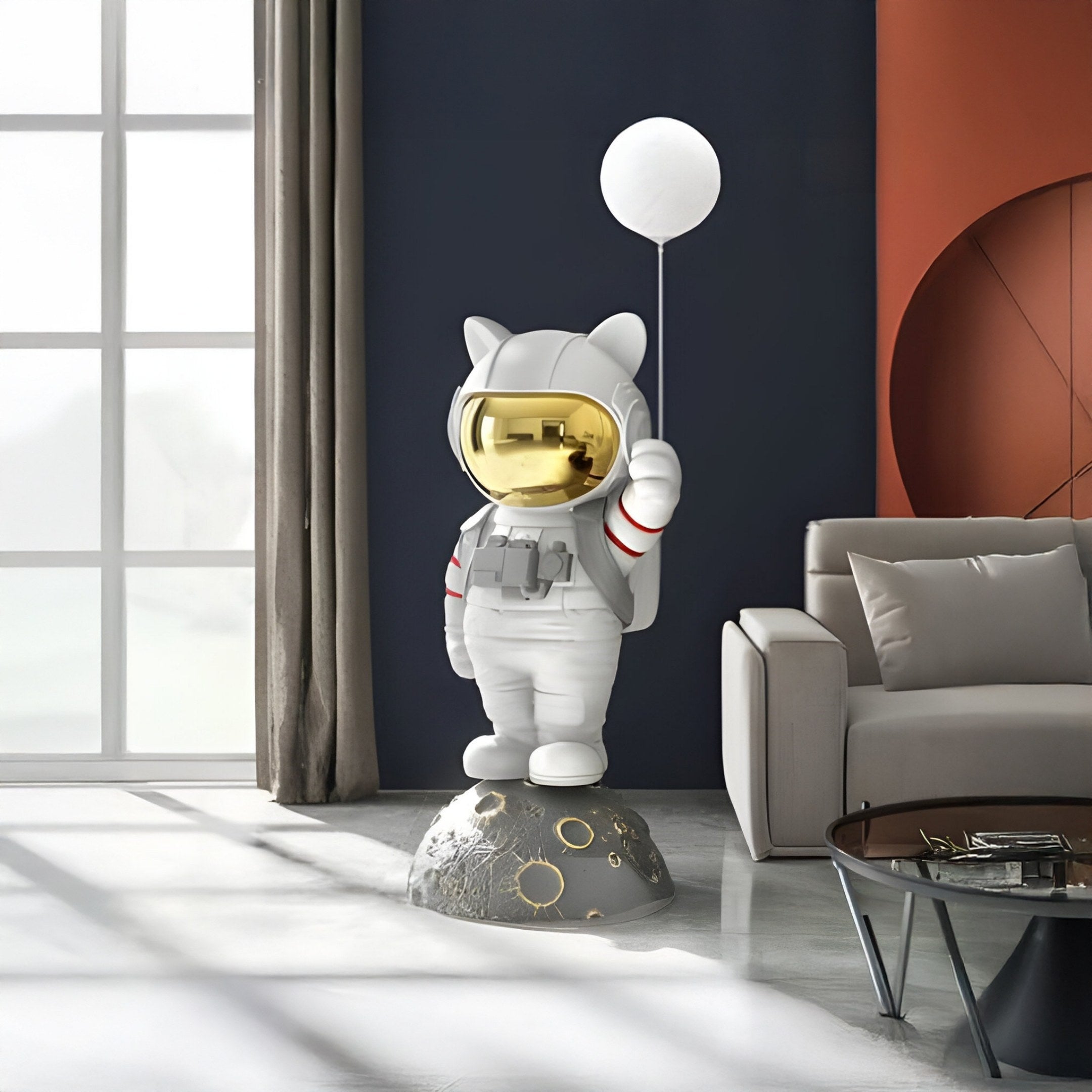 Add a cosmic edge to your décor with the Nova White Astronaut Kitty Glow Balloon Sculpture 120 cm. This whimsical figure features a bright white spacesuit with a glossy gold visor, cat ears, and a playful balloon that glows in four vivid colours: white, green, pink, and blue. A rechargeable battery with USB charging ensures easy illumination, while the sturdy resin build rests securely on a moon-textured base. The suit showcases subtle details, from the realistic grooves on the torso to the snug fit around the helmet, making it a standout piece for any modern or eclectic interior. Whether you’re a space enthusiast or simply want a statement piece, this sculpture delivers both novelty and function, offering a gentle light source that doubles as a conversation starter.