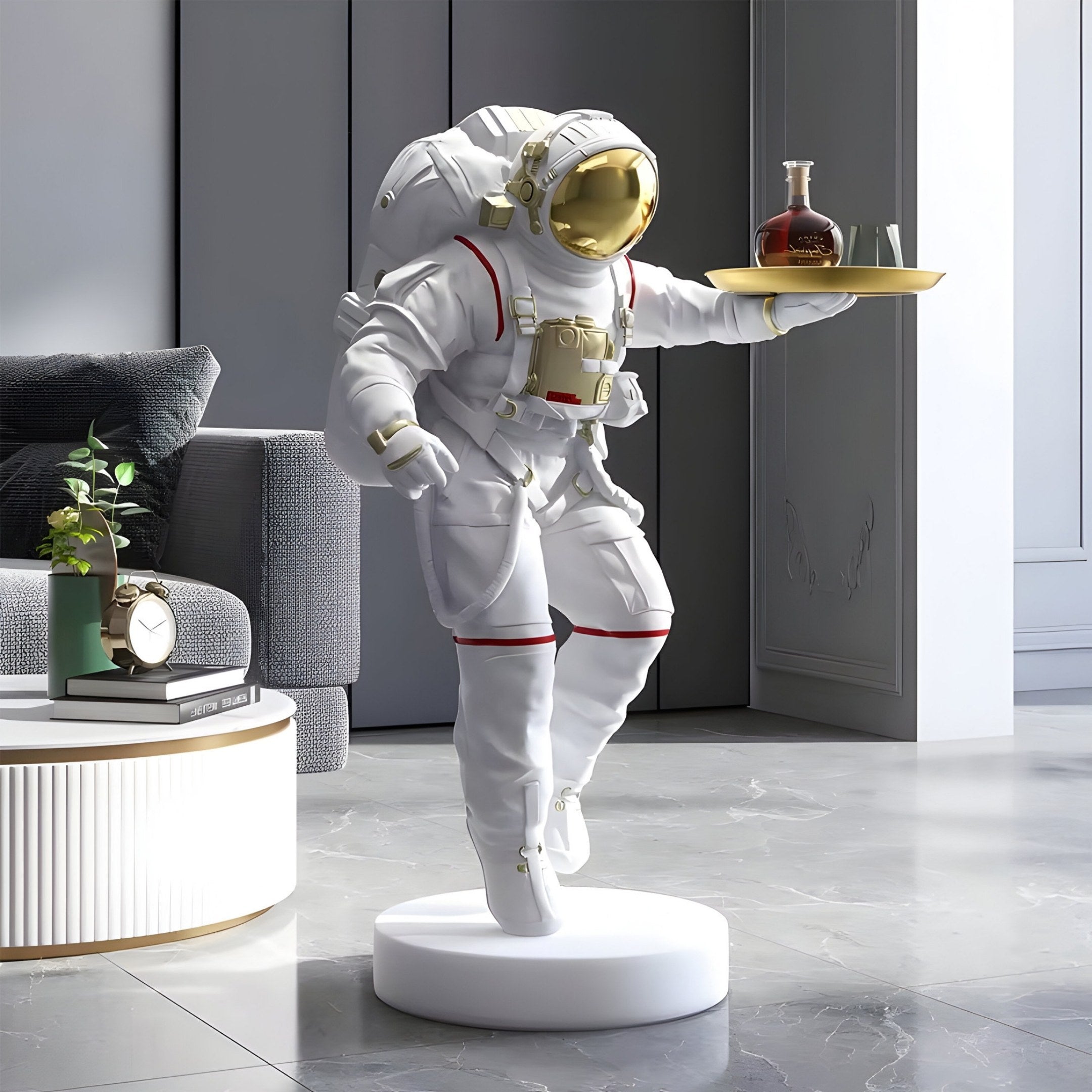 Standing at 85cm, the sculpture balances practicality and imaginative appeal, offering a unique way to display items such as drinks, snacks, or small ornaments. The durable resin build ensures longevity, while the white-and-gold palette suits a range of interior styles, from minimalist to modern eclectic. Position it in a well-lit spot to emphasise the visor’s reflective qualities and highlight the red accents on the suit. If you’re creating a space-themed corner or simply want a memorable piece to impress guests, this astronaut fits the bill. The serving tray doubles as a functional element, making it easy to incorporate into everyday use. By blending playful design with a nod to human curiosity, the White Space Astronaut Explorer Serve Sculpture serves as a standout feature that goes beyond mere decoration, reminding us of the boundless possibilities that lie just beyond our planet.