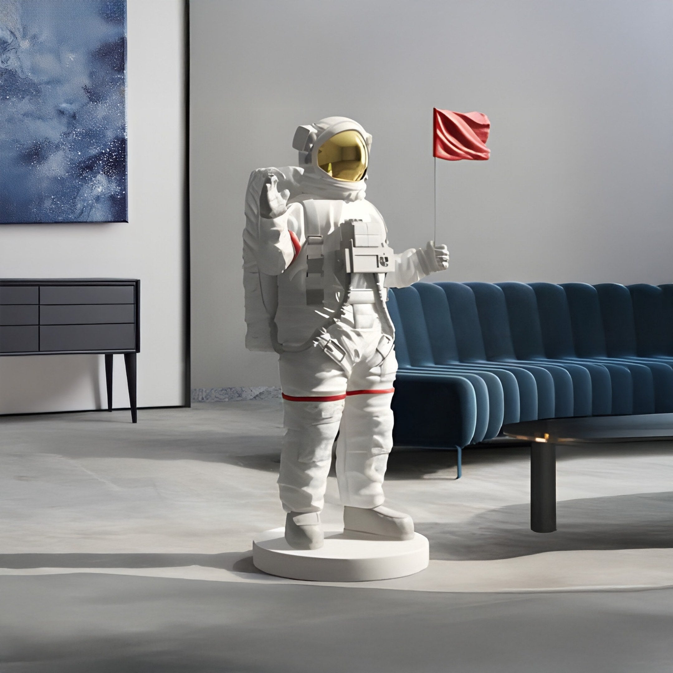Introduce a sense of exploration to your interior with the White Space Astronaut Pioneer Standing Sculpture, standing at 80cm. This resin figure features a crisp white spacesuit accented by subtle red stripes, echoing the aesthetic of modern space missions. A reflective gold visor immediately draws the eye, adding a futuristic edge, while the astronaut’s upright stance conveys confidence and readiness. One hand holds a small flag, suggesting the pioneering spirit of discovery and achievement. From the neatly contoured boots to the sculpted backpack, every detail reflects a commitment to quality design. Whether you’re a dedicated space enthusiast or simply looking for a conversation piece, this sculpture brings a bold, interstellar element to your décor.