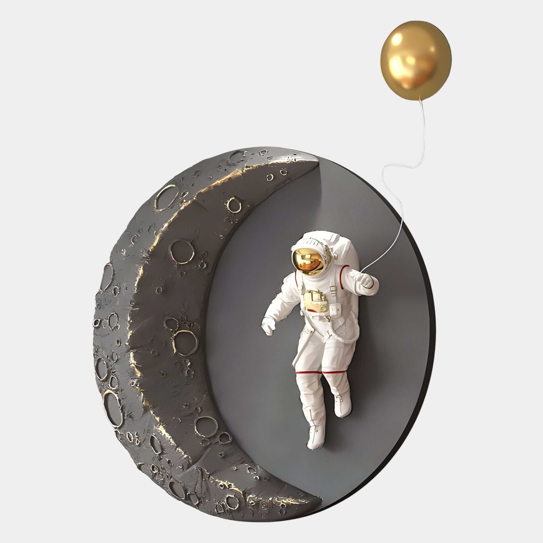 Grey & Gold 3D Lunar Balloon Astronaut Wall Art