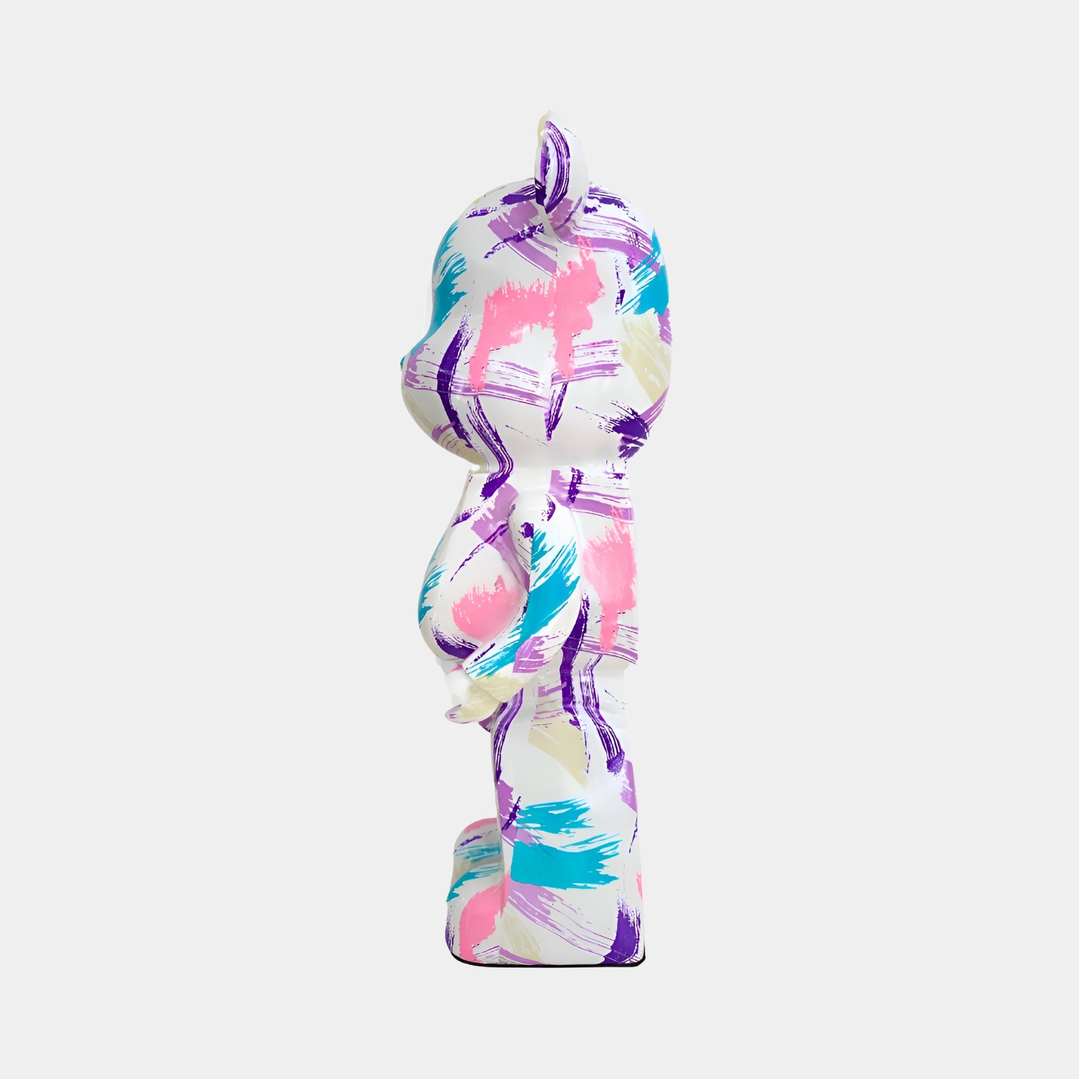 Introducing the Muse Metro Bear Sculpture in 50cm, a remarkable fusion of urban sophistication and artistic brilliance. Crafted from high-quality resin, this striking sculpture features a stylized bear adorned with intricate geometric patterns and vibrant colors achieved through a meticulous water-transferred finish. Standing at 50cm tall, the Muse Metro Bear Sculpture captivates with its dynamic design and detailed craftsmanship, making it a standout addition to any modern setting. The glossy surface not only enhances the vivid hues but also reflects light in a way that brings the sculpture to life, creating a mesmerizing visual experience.