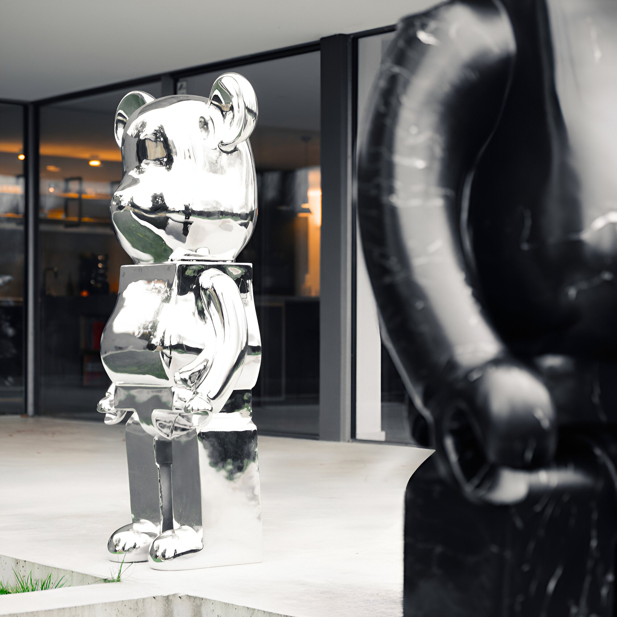 Introducing the Mystic Chrome Bear Sculpture in 135cm, a captivating blend of modern design and artistic craftsmanship. This impressive sculpture is crafted from high-quality resin and features a sleek chrome electroplated finish that exudes contemporary elegance. The bear's stylized form is accentuated by geometric facets and smooth contours, creating a dynamic visual effect that captures attention from every angle. Standing at 135cm tall, this piece serves as a striking centerpiece, infusing any interior space with sophistication and modern flair.