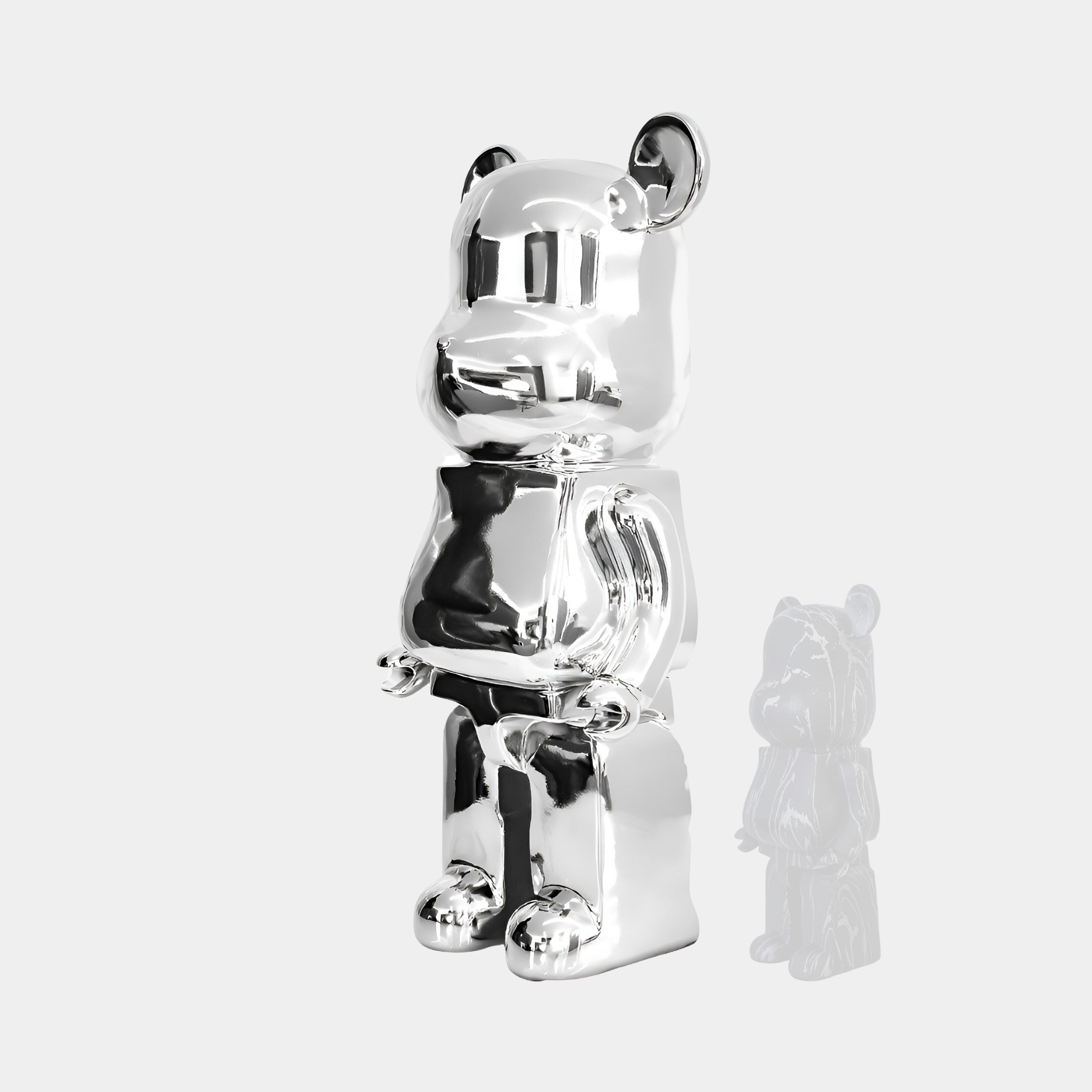 Sleek Chrome Elegance: The Mystic Chrome Bear Sculpture
