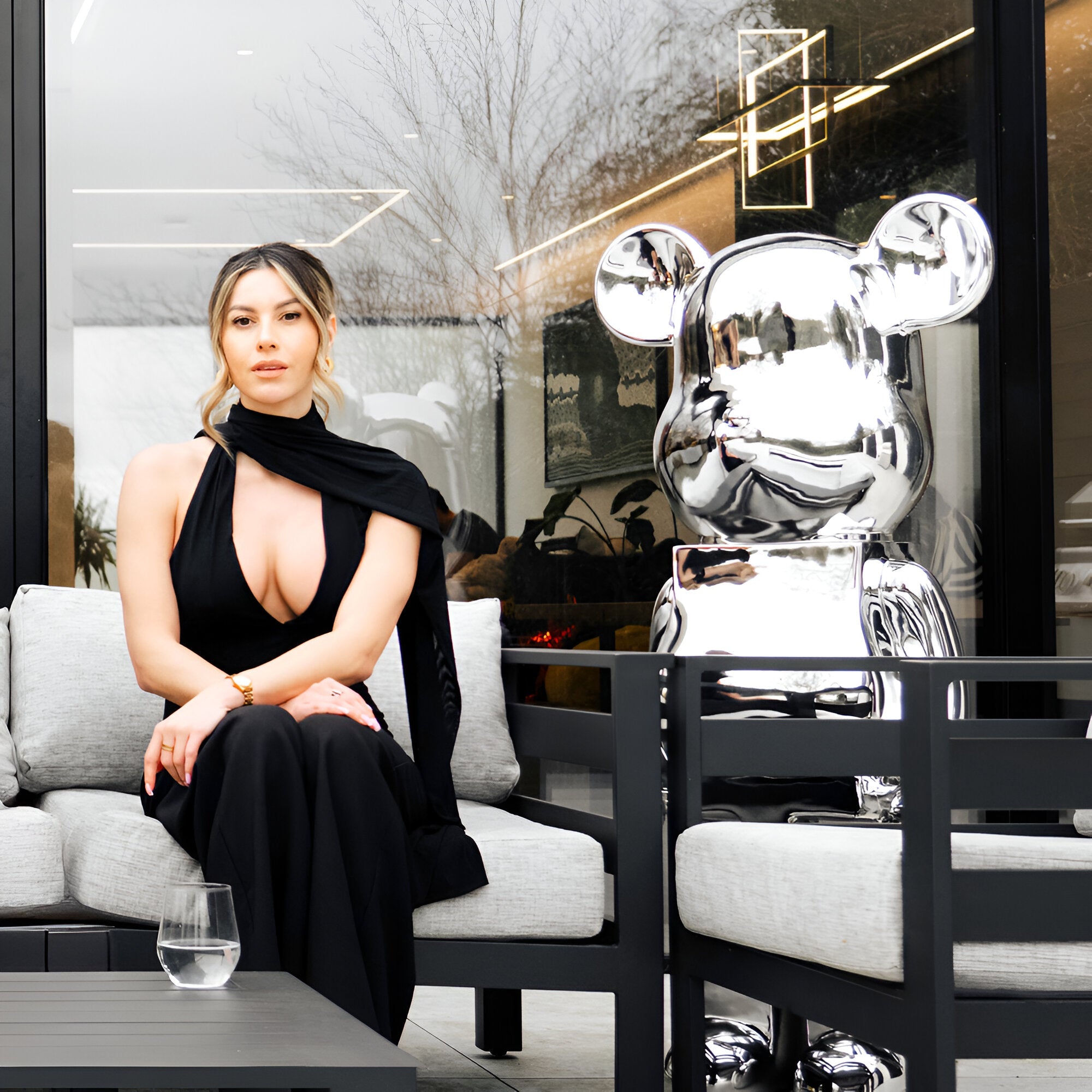 Perfect for enhancing homes, offices, or galleries, this sculpture adds a touch of luxury and modernity to various interior styles, from minimalist to industrial chic. The reflective chrome finish interacts beautifully with ambient light, creating a mesmerizing visual experience that elevates your decor. Its substantial size and unique design make it an ideal statement piece, reflecting a refined appreciation for contemporary art and innovative design.