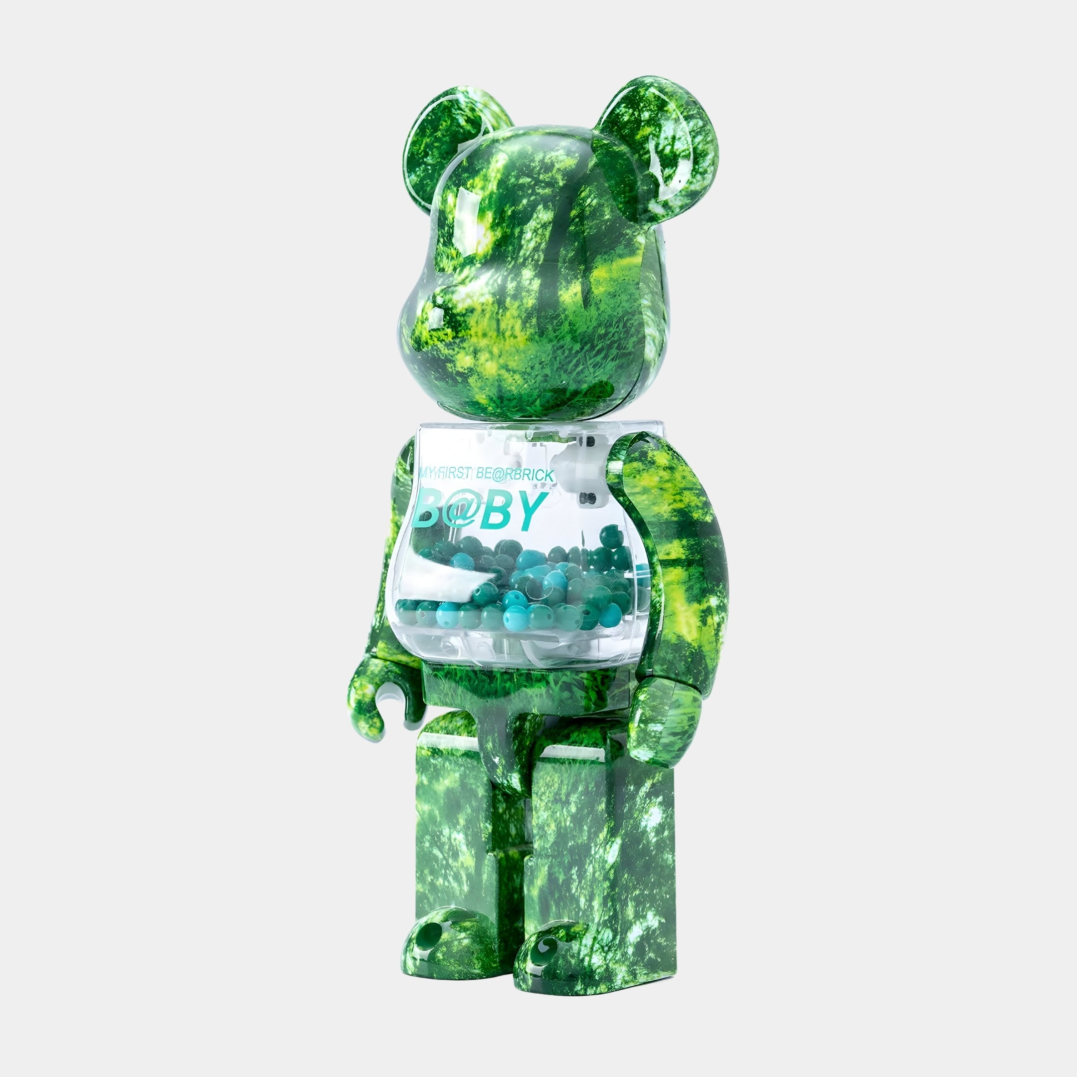 The Woodland Beads Bear Sculpture stands 70 cm tall, cast in lightweight resin and finished with a high-resolution forest-canopy wrap. Vivid emeralds, moss greens and sunlit yellow-greens flow across domed ears, rounded snout and articulated limbs, creating the illusion of dappled leaves in perpetual motion. At the centre of the torso, a clear acrylic window reveals a chamber of aqua-teal beads stamped with “B@BY” in bold lettering, an eye-catching contrast to the organic surface. The gloss lacquer amplifies every hue and protects against scuffs and UV fade; a single microfibre wipe restores its glassy sheen. Despite its presence, the piece stays easy to manoeuvre, and each limited-run bear is hand-numbered and inspected so the print aligns cleanly and the bead capsule sits perfectly flush.