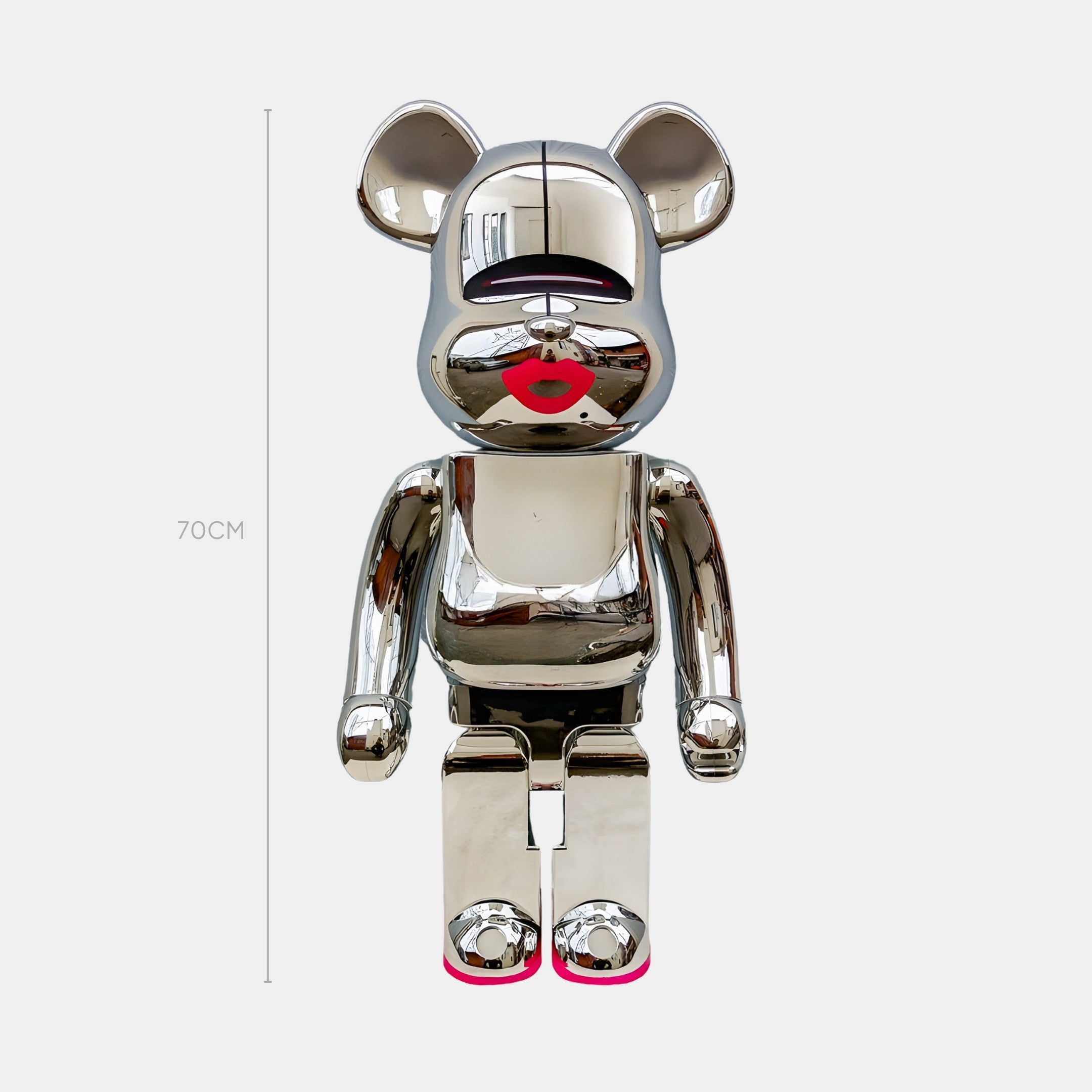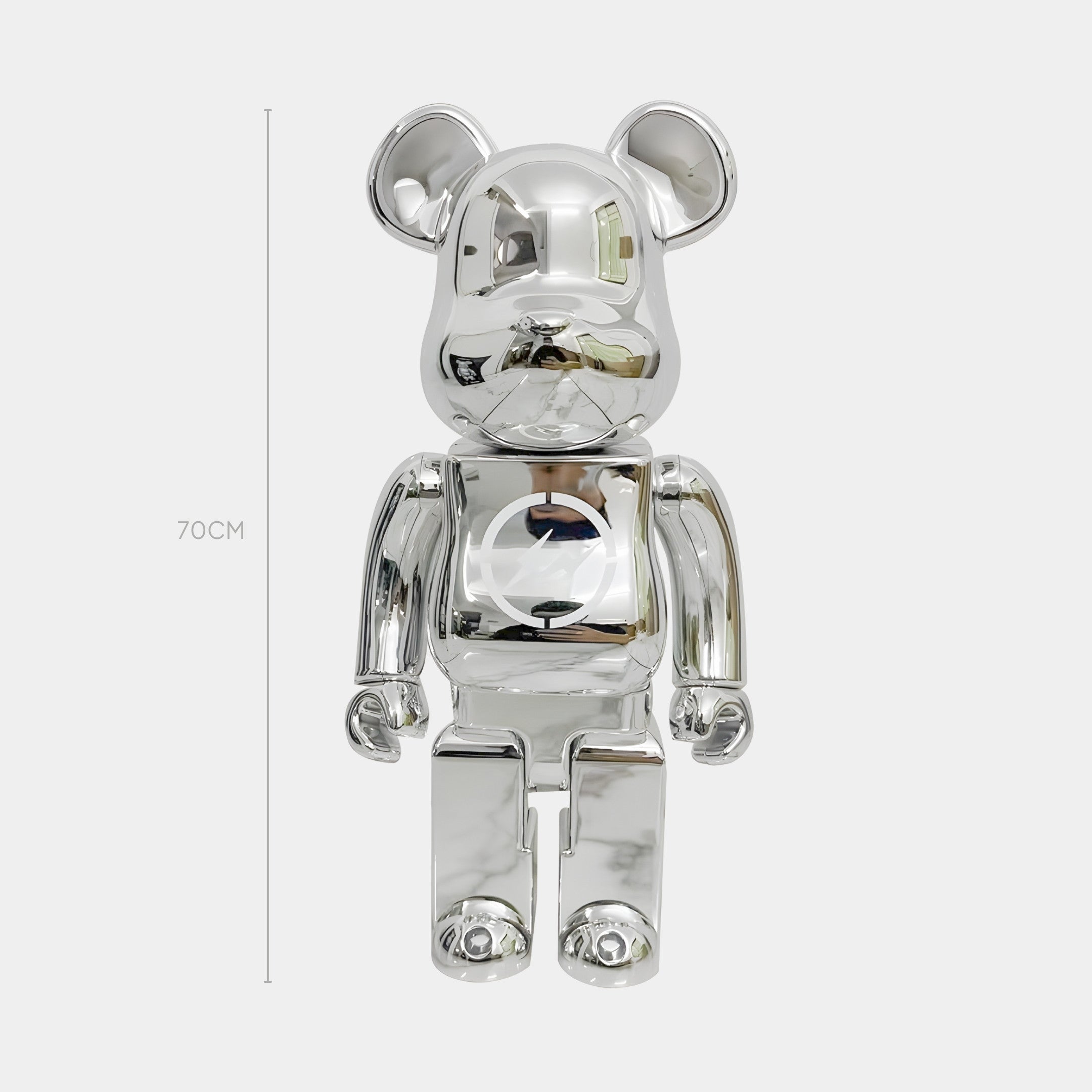 Bolt Emblem Chrome Bear Sculpture - 70cm