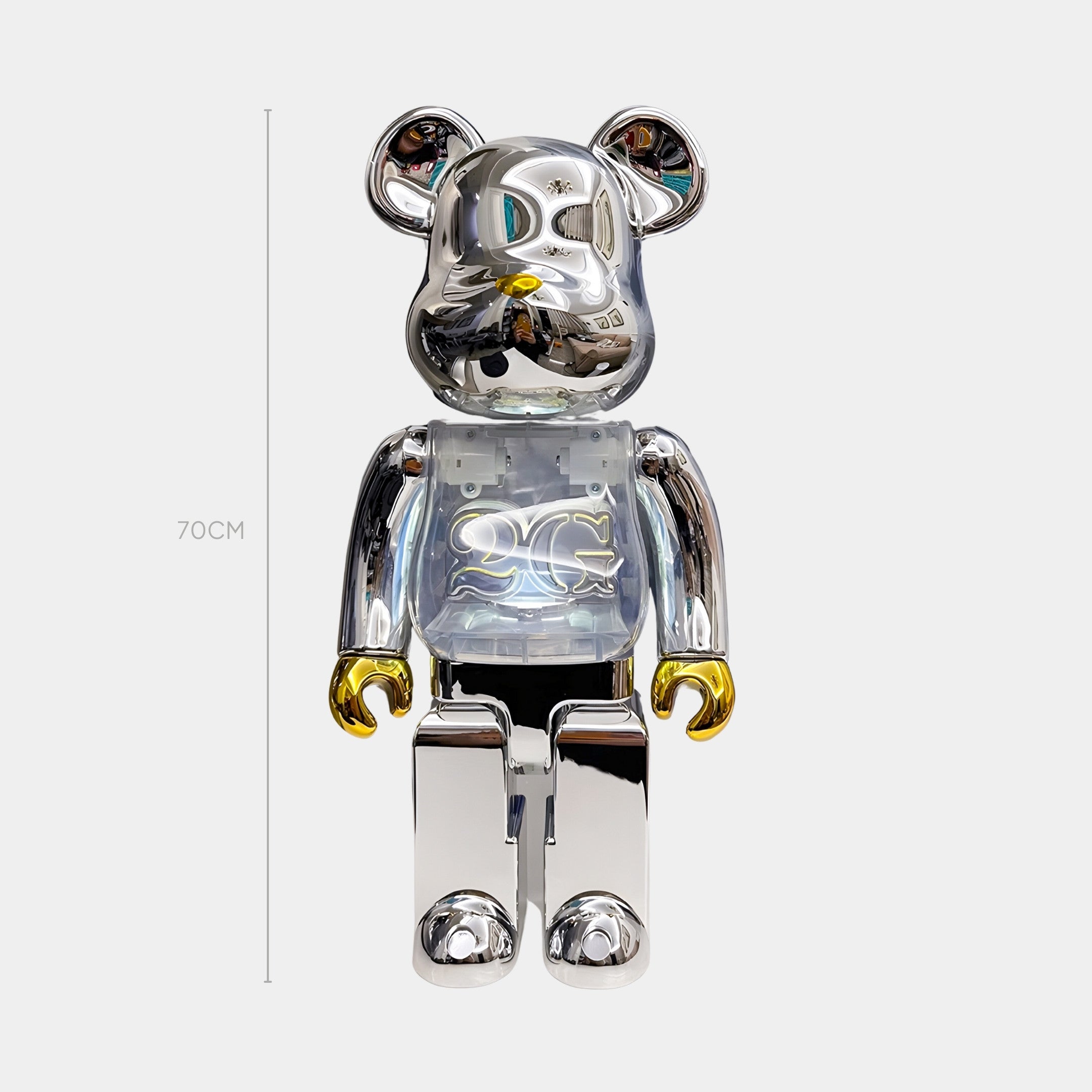 Chinese Charm Chrome Bear Sculpture - 70cm