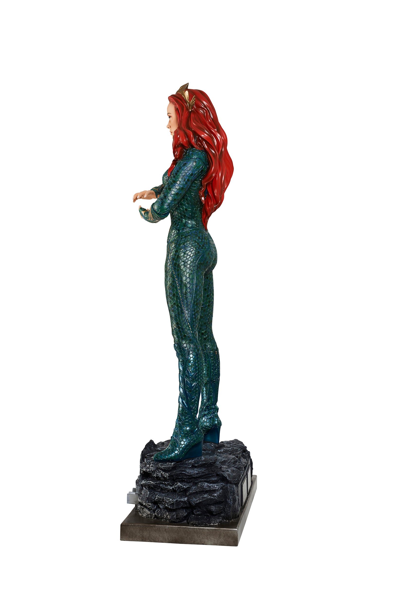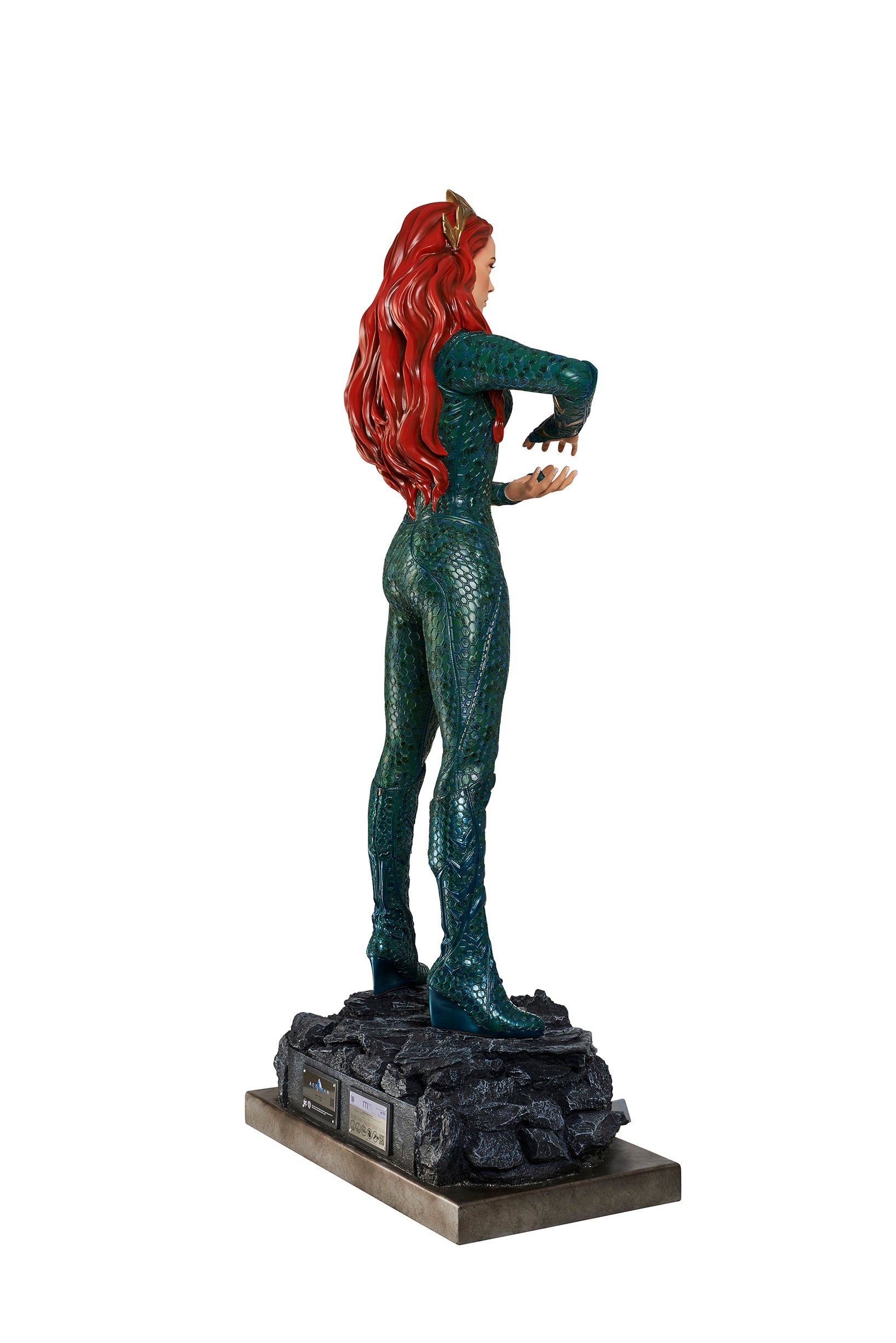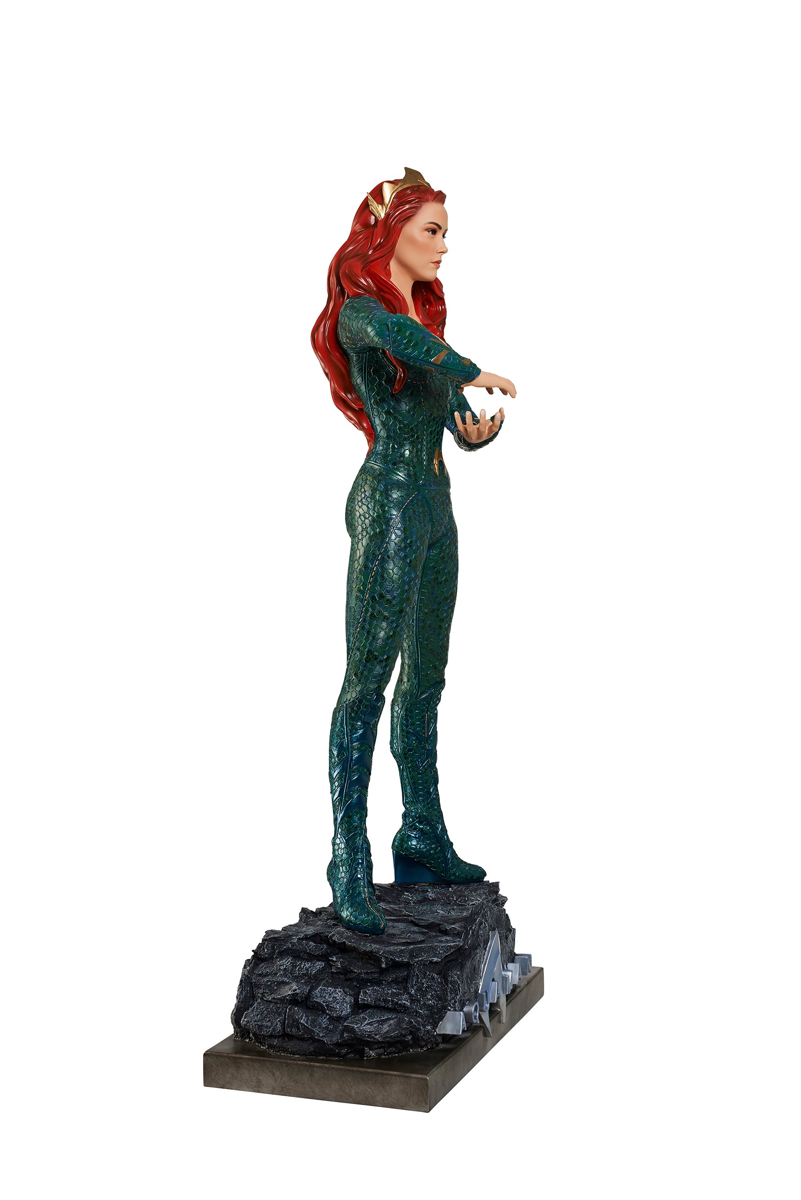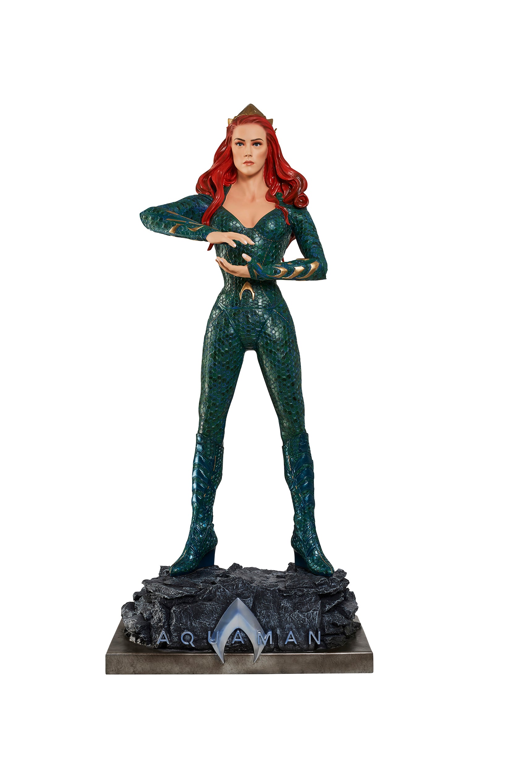From James Wan's smash success, comes the Queen of Atlantis, Mera, who fights alongside her soulmate, the Atlantian King, Aquaman. Mera is featured in her aquatic suit, featuring her unique octagonal patterns?and is?standing on a custom base which includes the DC film's logo.