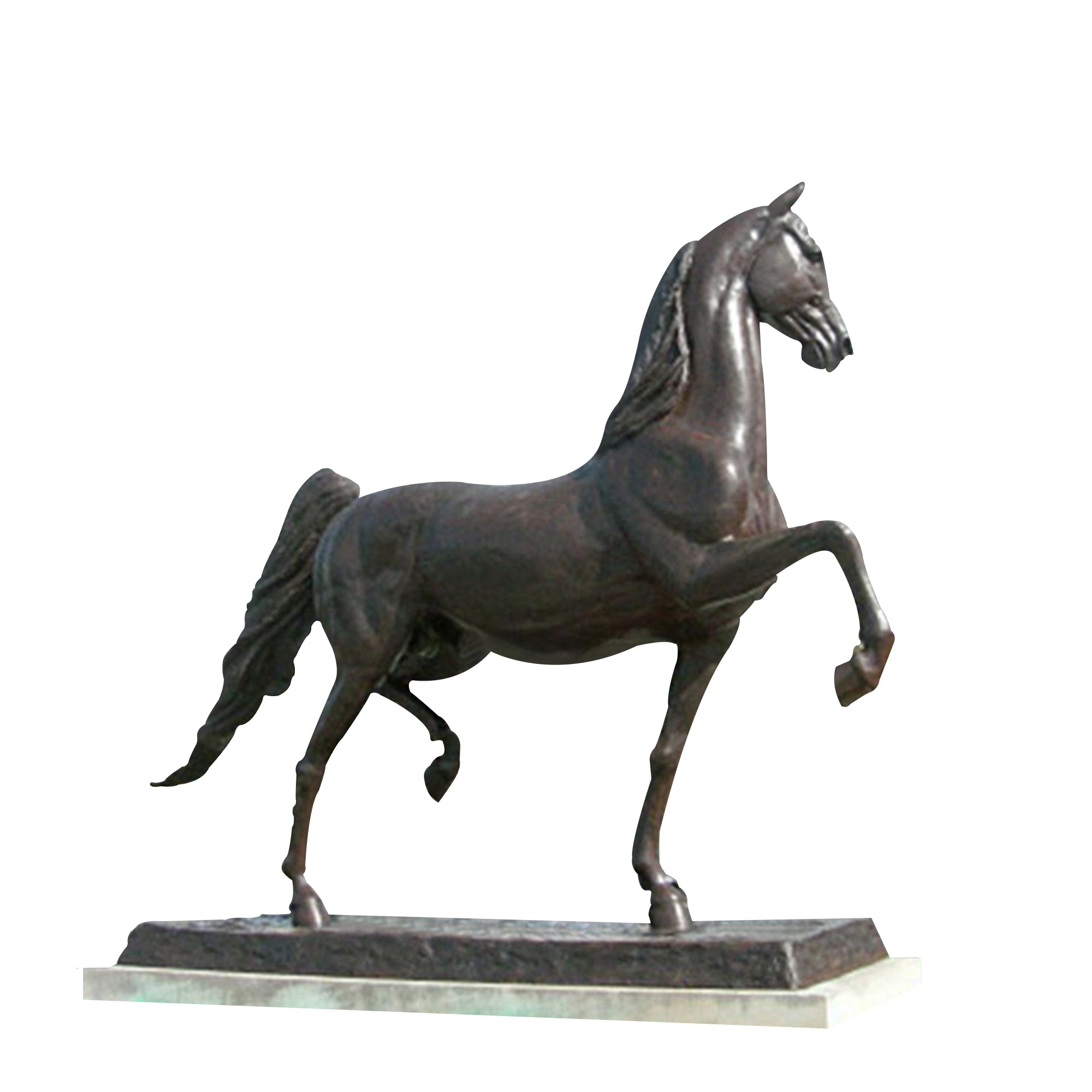 The Graceful Trotting Horse Bronze Statue is an exquisite piece that embodies elegance, strength, and poise. This sculpture captures a horse in mid-trot, showcasing the beauty of its form and the fluidity of its movement. The polished bronze finish adds a refined touch, enhancing the intricate details of the horse's musculature and flowing mane.
