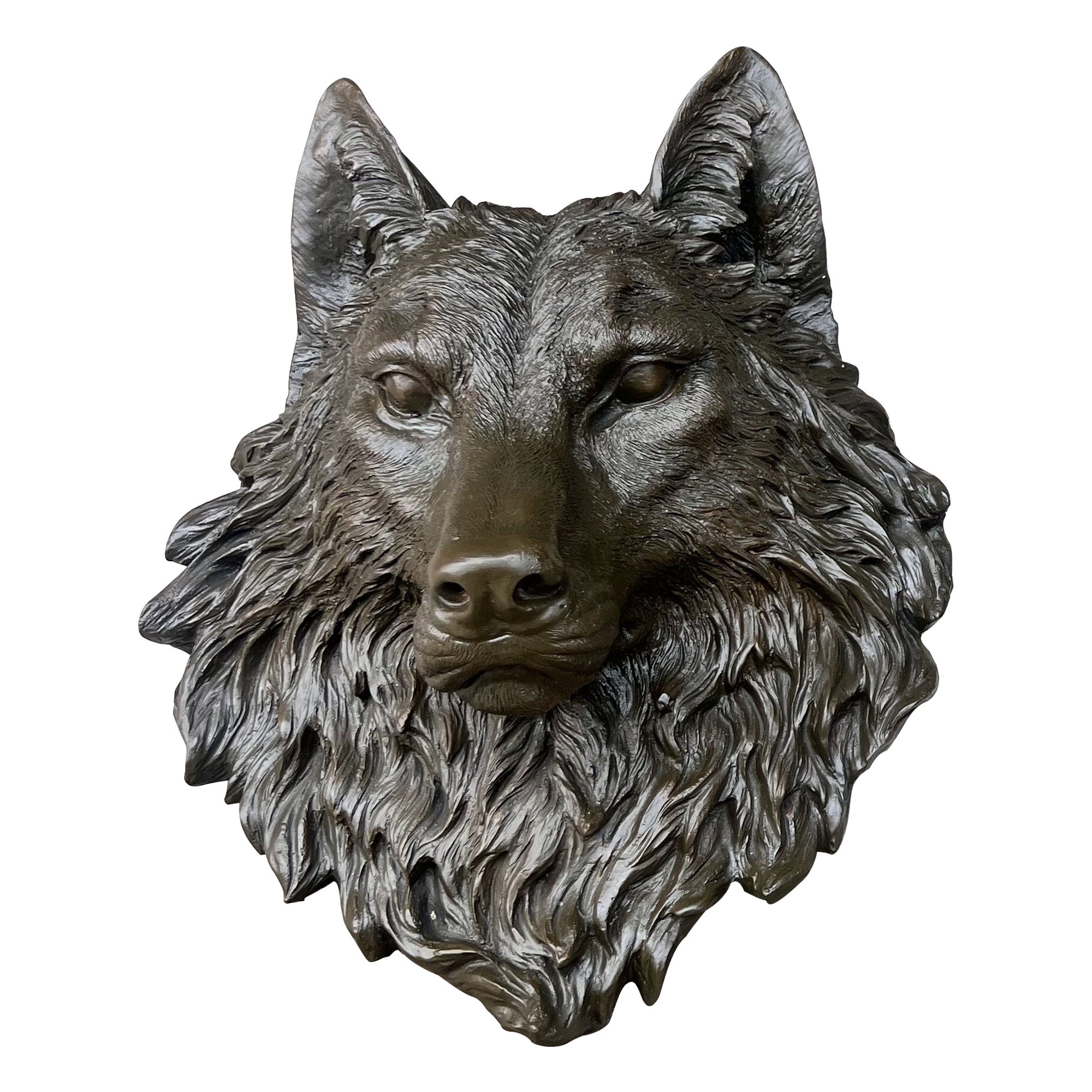 The Custom Size Bronze Animal Statue Wolf Head Wall Sculpture is an extraordinary representation of the strength, loyalty, and wisdom of the wolf. Handcrafted from high-quality bronze and finished with a hand-painted dark bronze finish, this detailed bronze sculpture captures the wolf's fierce yet graceful presence. The wolf, often symbolizing courage, freedom, and leadership, is beautifully portrayed with intricate detail in its fur and piercing gaze.