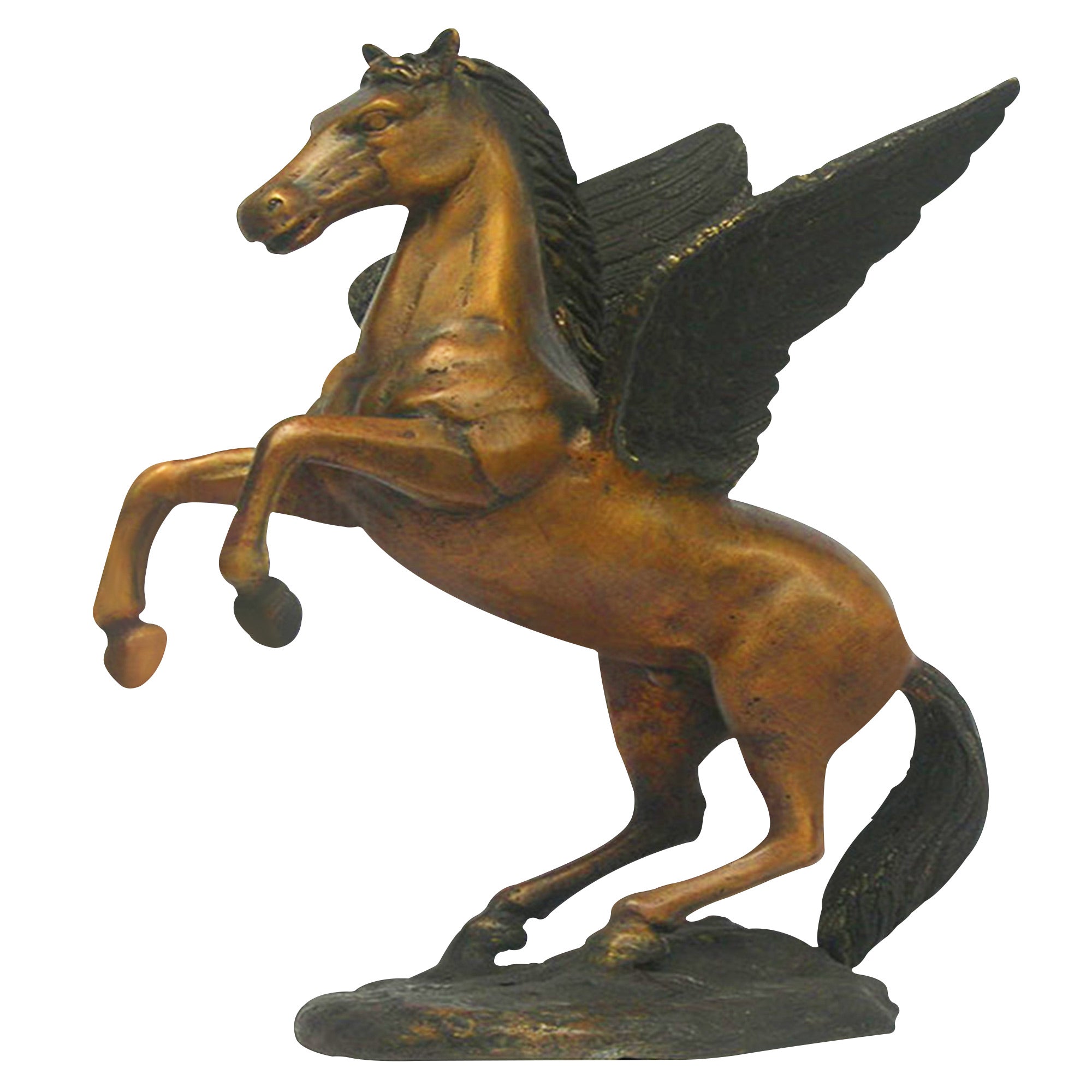 Finished with an aged bronze patina, this piece exudes a timeless, antique charm that complements both traditional and modern interiors. Whether displayed in a living room, office, or as a centerpiece on a mantel, the Pegasus statue brings an element of mythical grandeur to any space. Its compact size makes it ideal for various locations, adding a touch of elegance and inspiration wherever it is placed.