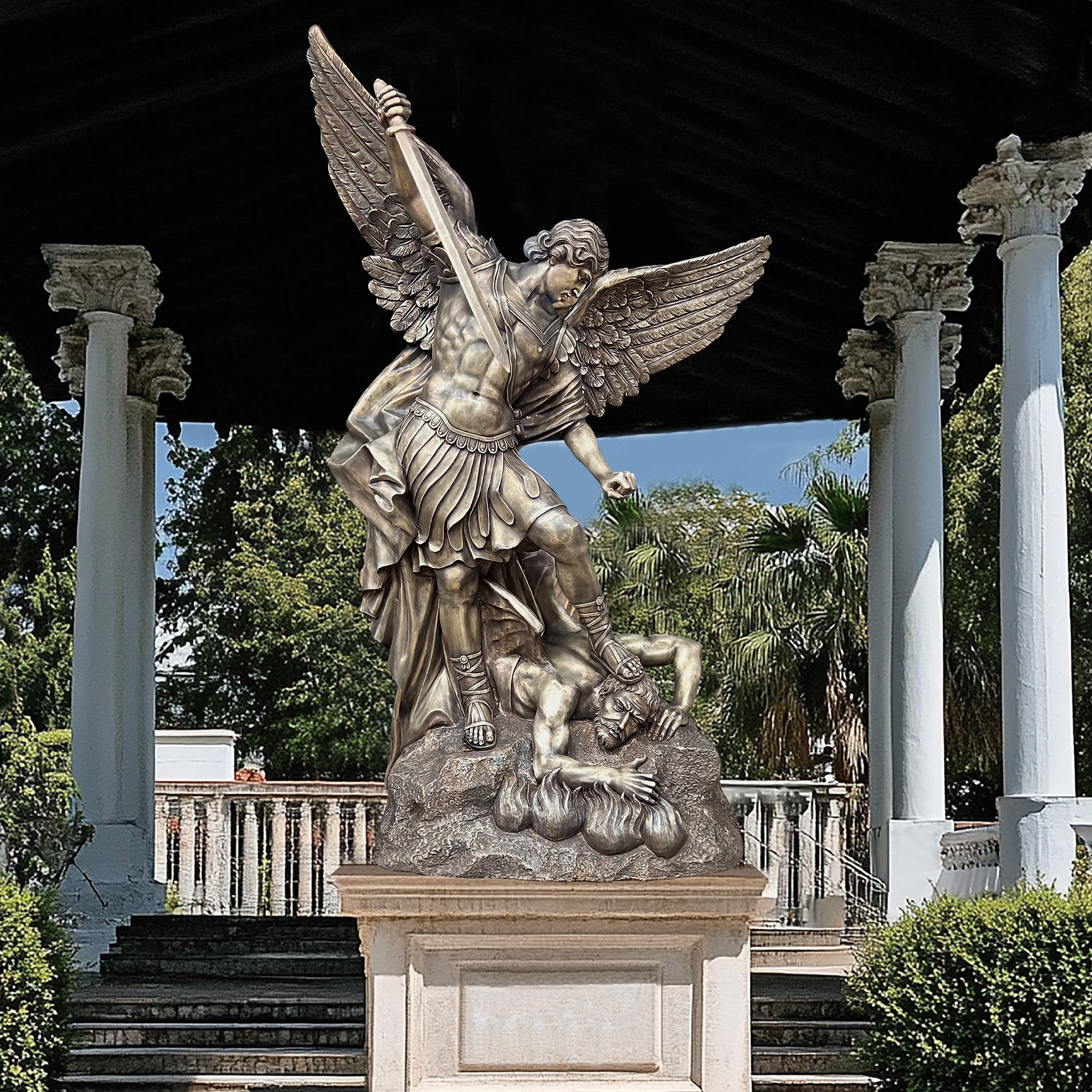 • Symbolic Design: This Bronze Sculpture portrays St. Michael's triumph over evil, symbolizing faith, courage, and divine protection.