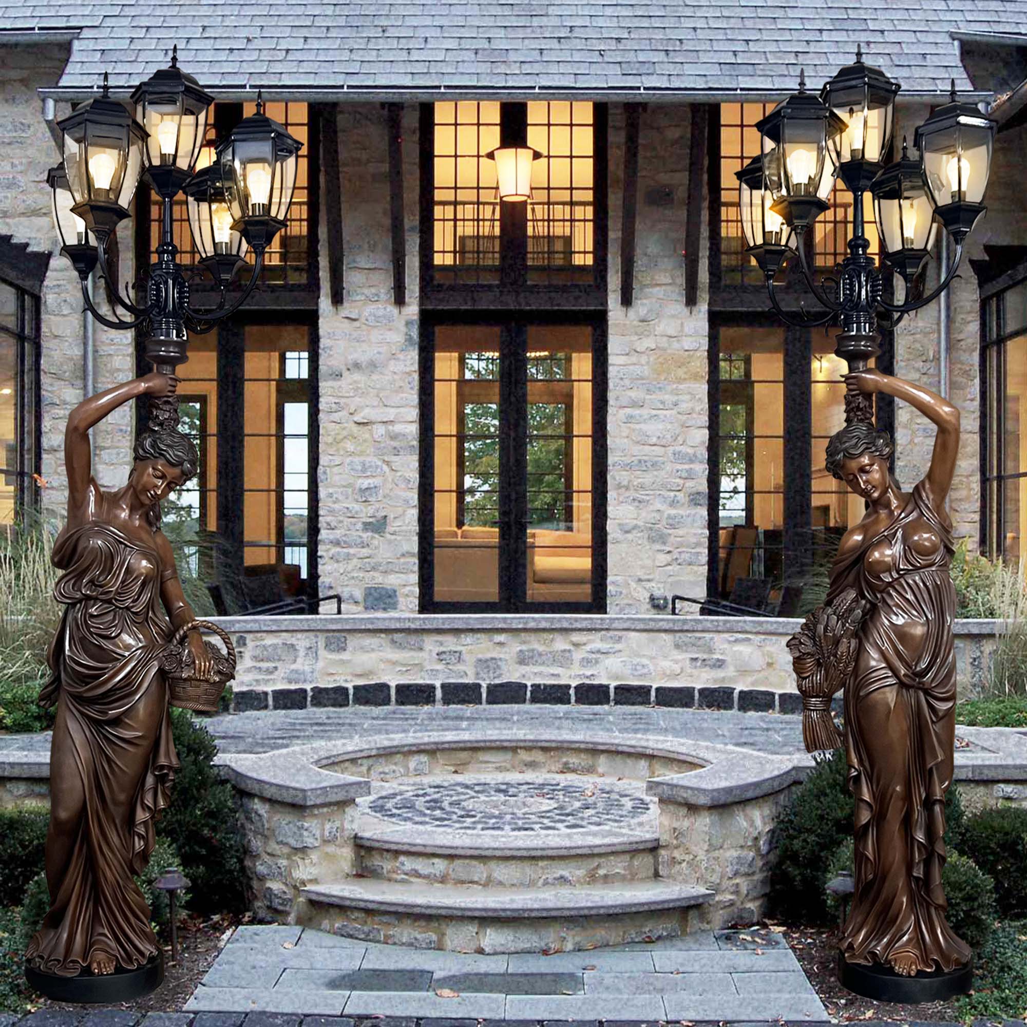 PEGASUS Elegant Bronze Lady Lamp Post Sculptures - Pair FB-045