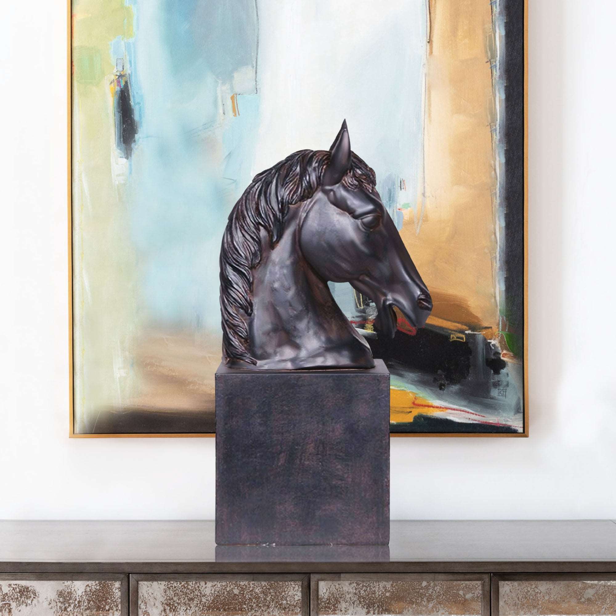 PEGASUS Cast Bronze Art Black Horse Head Sculpture FB-068