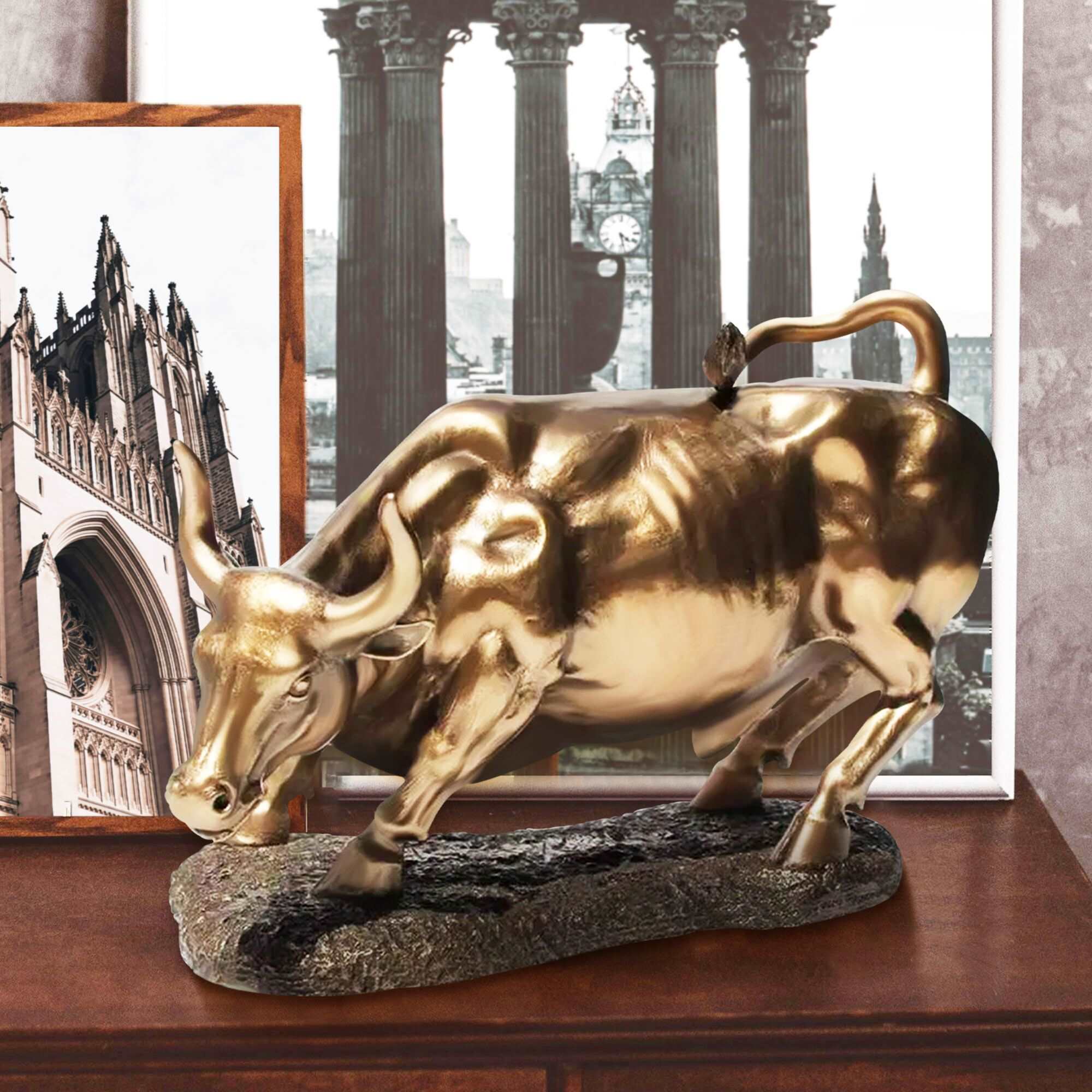 PEGASUS Custom Polished Indoor Bronze Charging Bull Tabletop Sculpture FB-071
