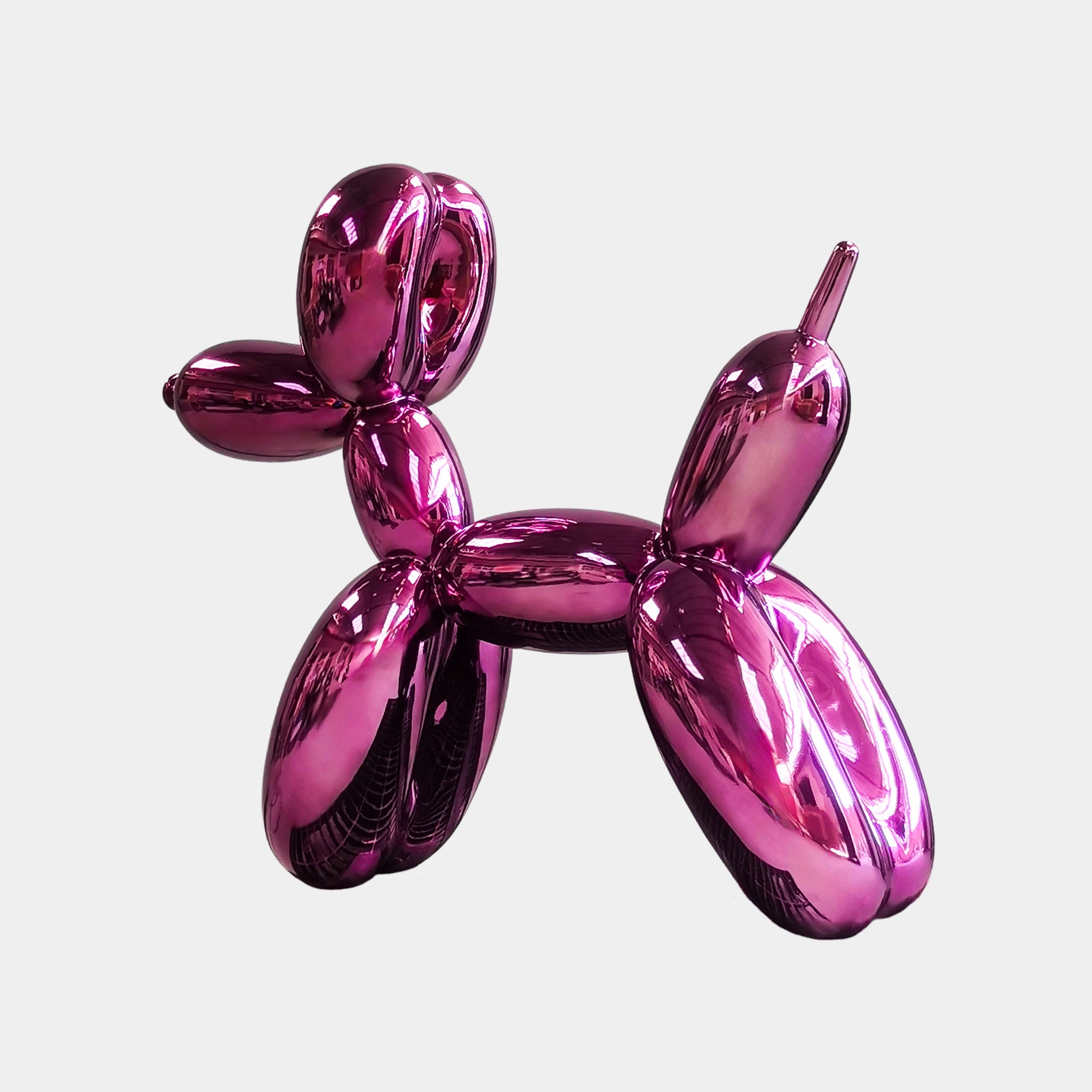 This striking Balloon Dog sculpture in bold purple brings a playful yet contemporary flair to any space. The mirror-polished finish enhances its vibrant color and sleek design, reflecting light in dynamic ways, making it a standout piece. The dog’s round, smooth curves evoke a sense of whimsy and sophistication. Perfect for both indoor and outdoor settings, its versatile form creates a captivating focal point in any modern environment, blending seamlessly with various design aesthetics. A true statement piece for art enthusiasts.