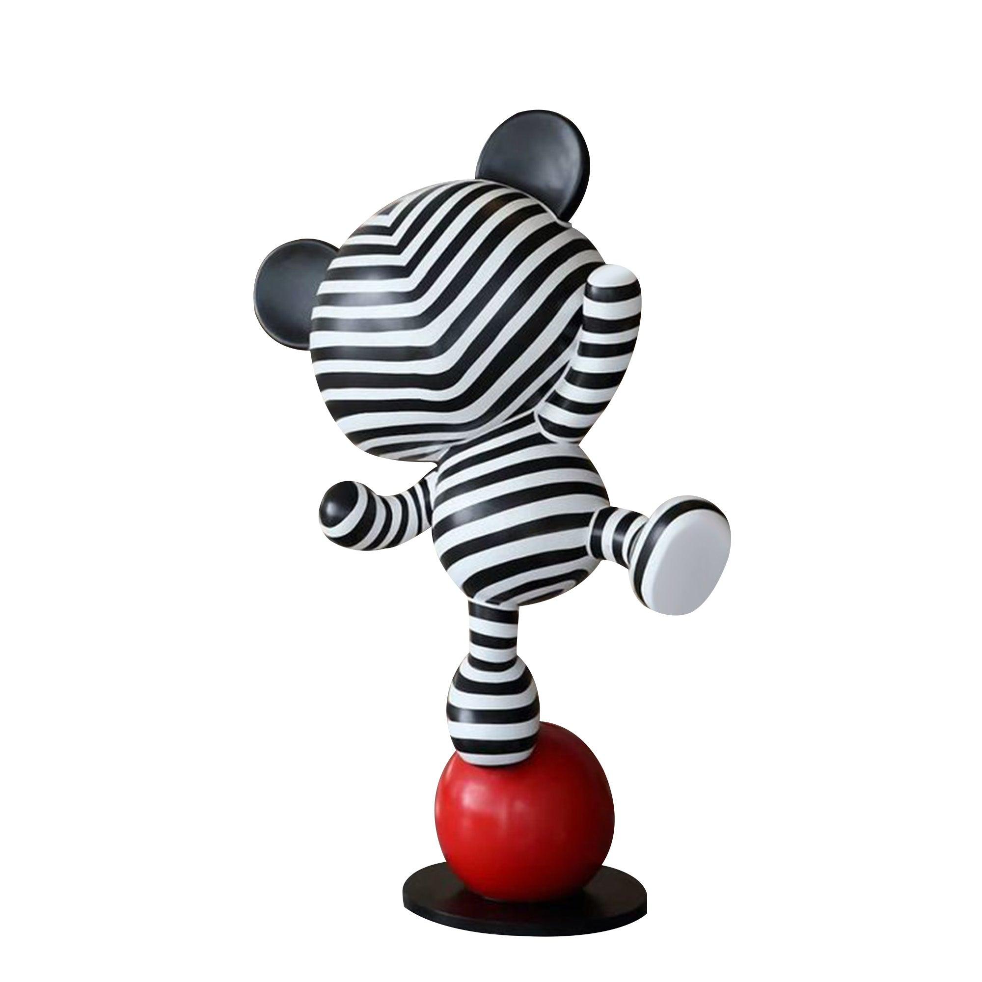 This Playful Black and White Striped Bear Fiberglass Sculpture brings a whimsical touch to any room with its unique design and eye-catching stripes. Crafted from high-quality fiberglass, this bear stands balancing on a vibrant red base, adding a bold splash of color to its monochrome body. Perfect for contemporary art lovers and collectors, this sculpture combines fun and sophistication, making it ideal for modern interiors, art spaces, and pop-culture-inspired decor. With its dynamic pose and distinctive style, this piece is a captivating addition to any space.
