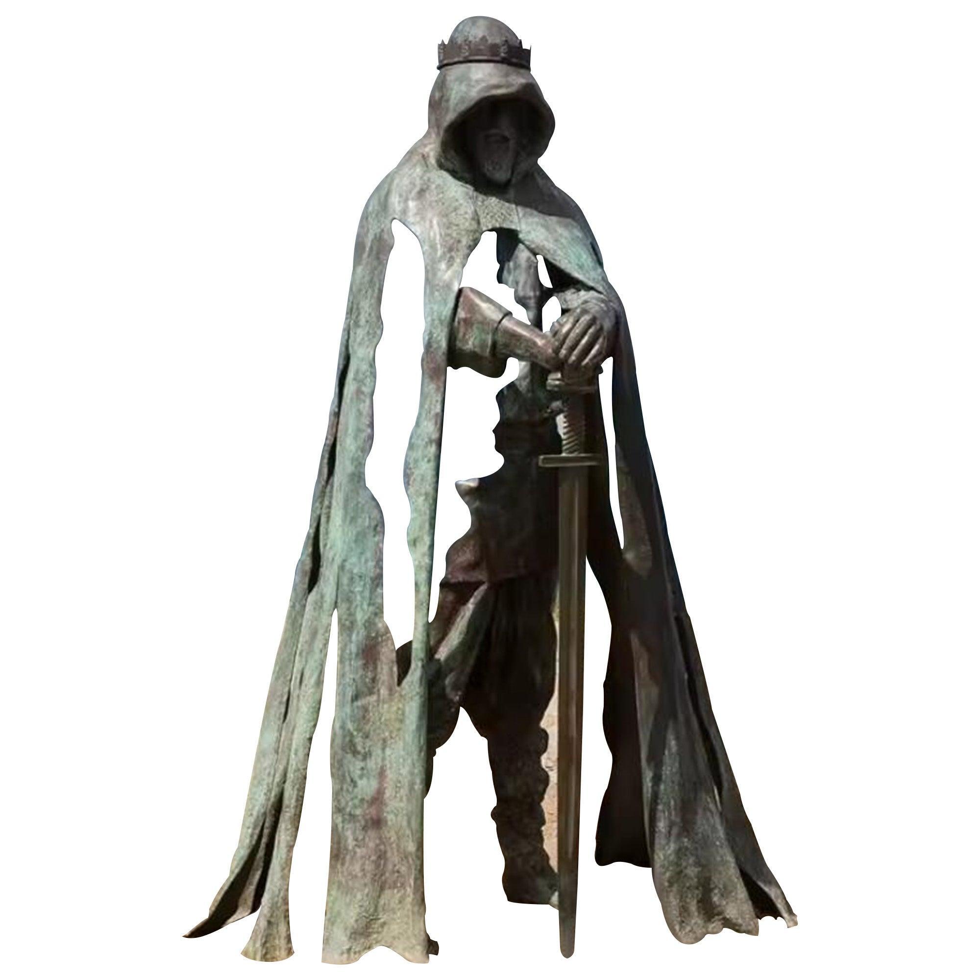 This King Arthur Bronze Sculpture captures the mystique and majesty of a legendary medieval warrior, ideal for adding historical gravitas to any outdoor setting. Crafted in an abstract yet powerful form, this life-size statue of King Arthur, with his hooded cloak and sword firmly planted in the ground, embodies timeless courage and nobility. The aged patina finish gives it a weathered, antique appearance that adds to its mythical aura, making it an impressive focal point for gardens, historical sites, or seaside landscapes.