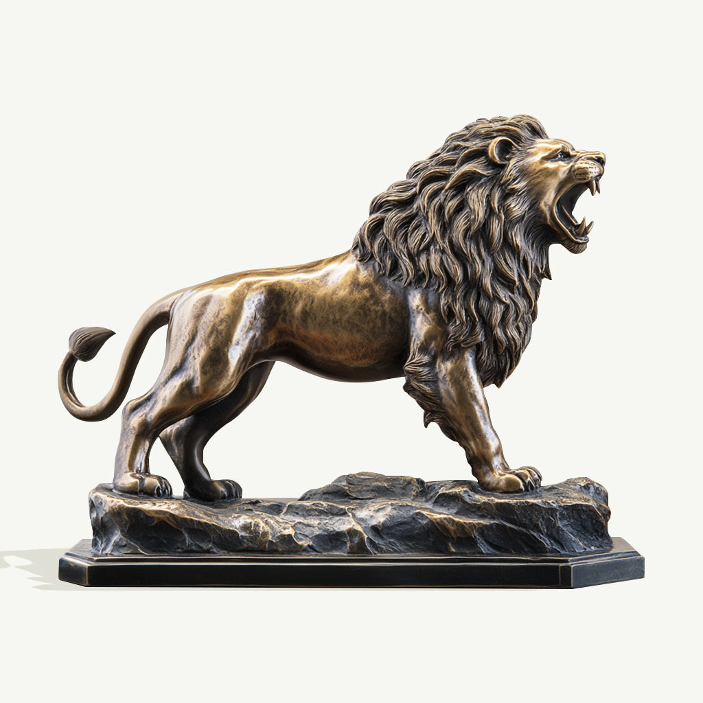 This Custom Premium Roaring Bronze Lion Sculpture epitomizes power and elegance, with its striking roar and poised stance. The antiqued bronze finish gives this lion sculpture a classic yet bold appearance, blending tradition with strength. Every detail, from the finely textured mane to the rugged base, is meticulously crafted to make this indoor Table-Top sculpture a centerpiece of admiration. Perfect for high-end interiors, it serves as a powerful representation of authority and prestige while adding an artistic flair to its surroundings. Customizable options ensure it fits perfectly with your unique space and design requirements.