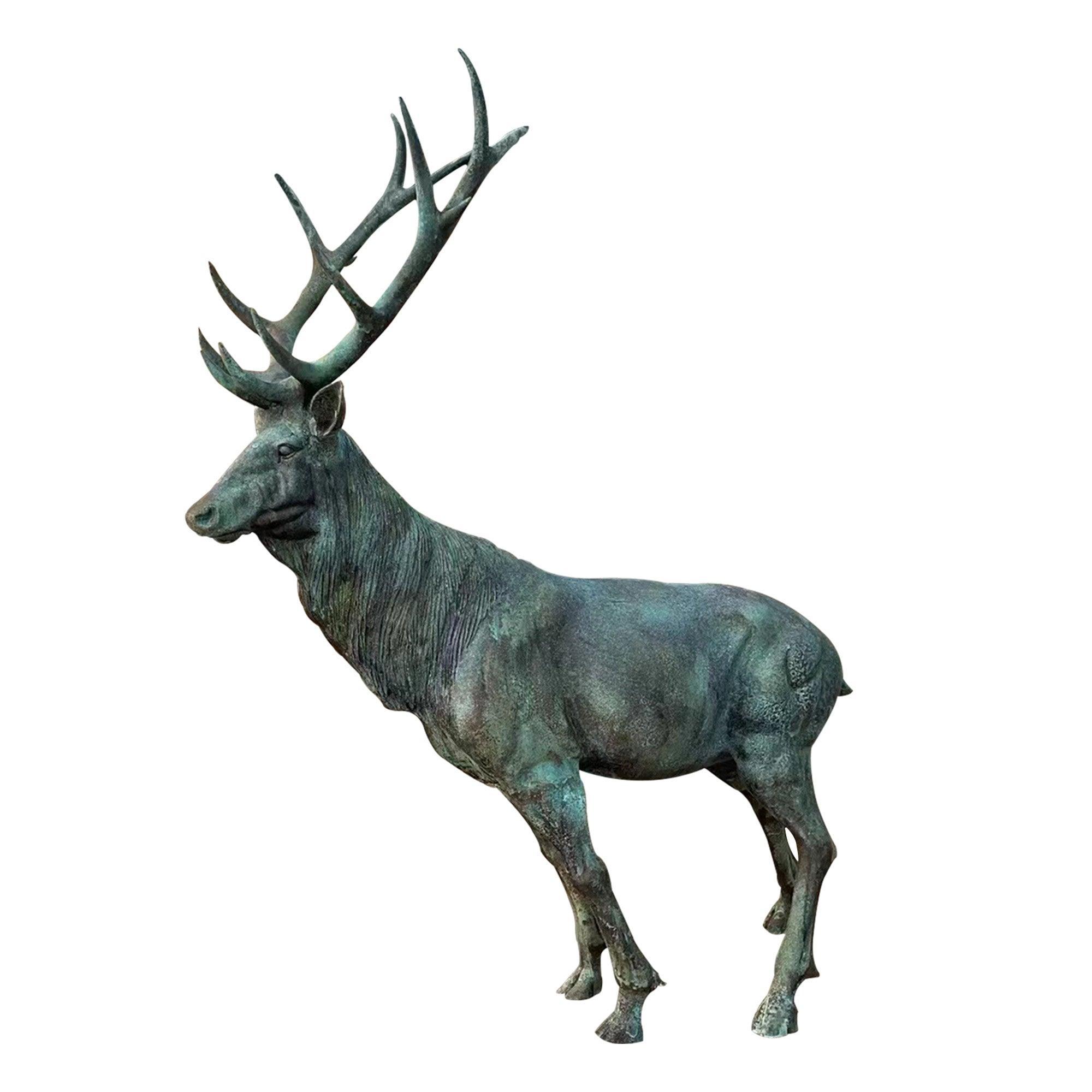 This life-size Garden Art Animal Sculpture Elk Bronze Sculpture captures the majestic beauty of nature, perfect for bringing an elegant wildlife presence to any outdoor setting. With finely detailed antlers and a poised, alert posture, this sculpture embodies the strength and grace of an elk in the wild. The aged green patina finish provides an authentic, timeless look, blending seamlessly with natural landscapes. Ideal for public parks, private gardens, or as a statement piece in outdoor spaces, this sculpture invites a sense of wilderness and serenity to its surroundings.
