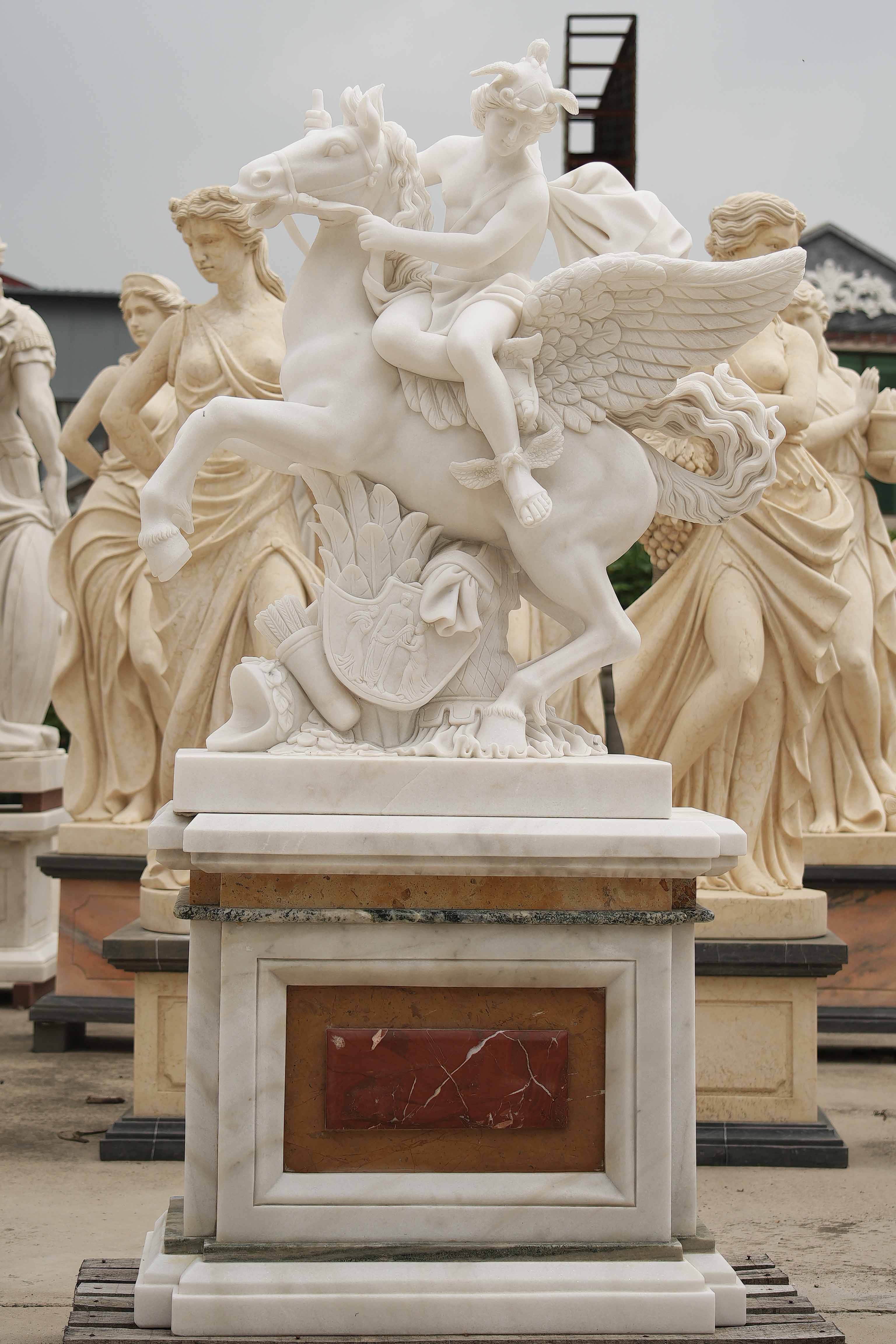 PEGASUS Custom White Marble Pegasus Rider Sculpture FM-058