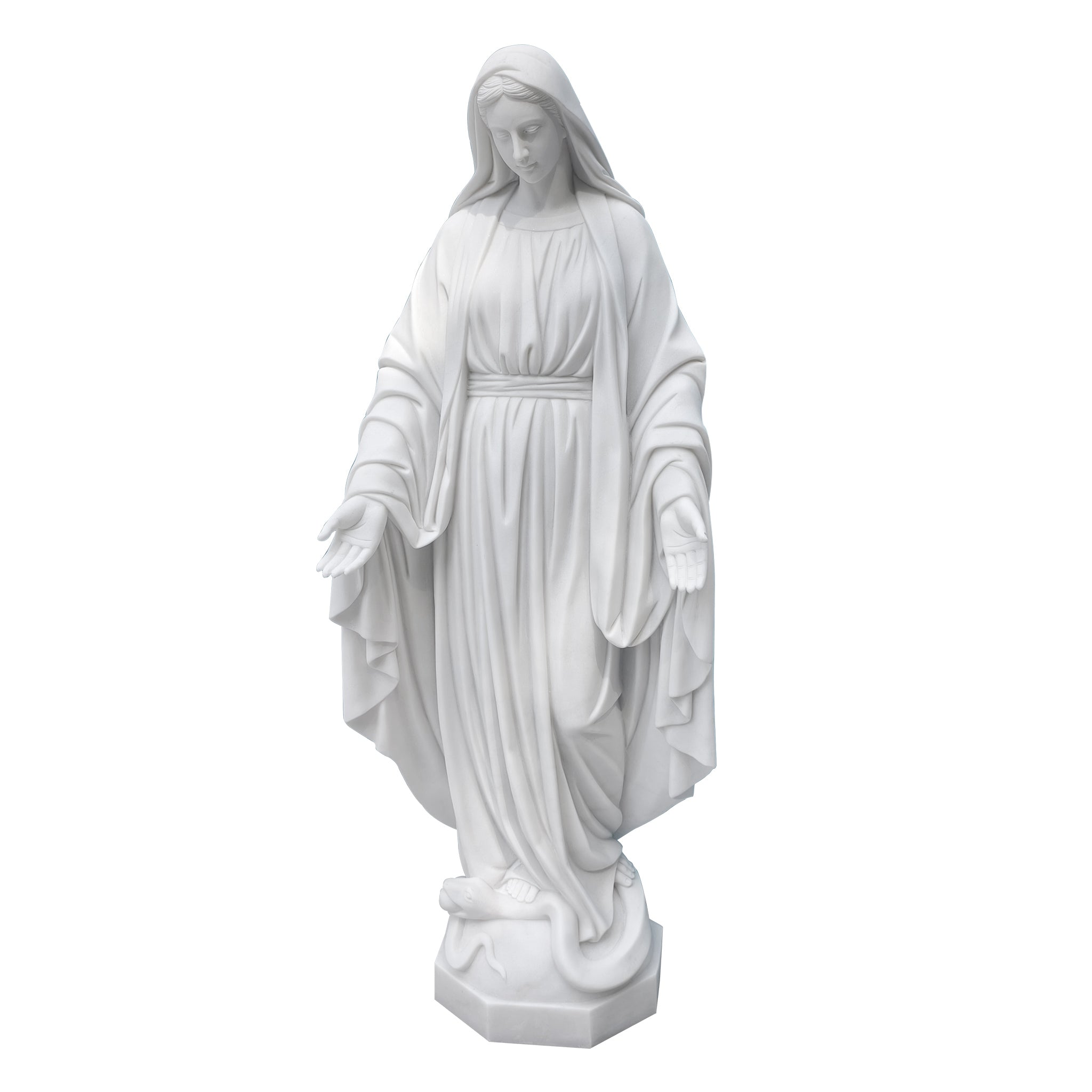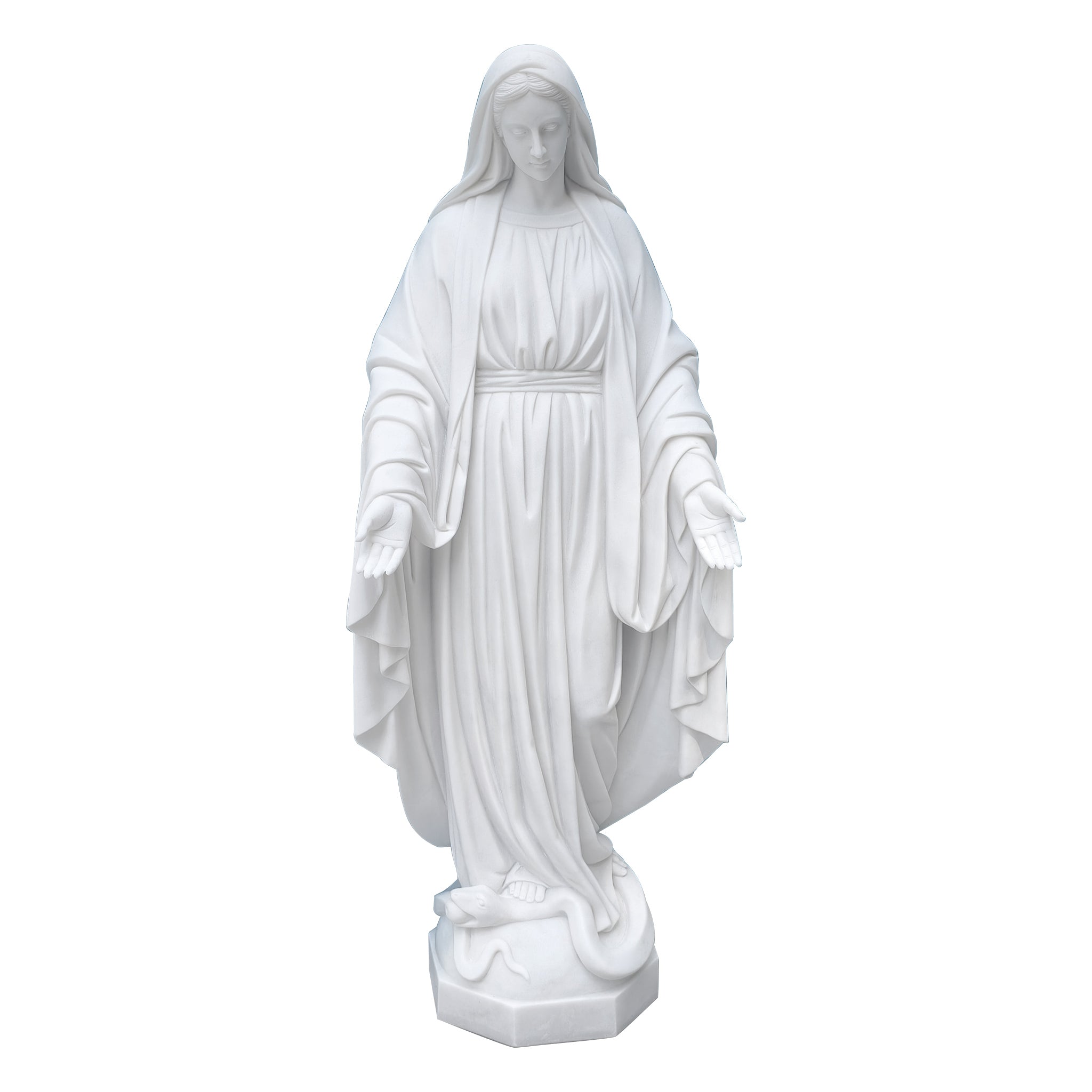 This Immaculate Conception Virgin Mary Marble Sculpture embodies grace and divine purity, making it an inspiring addition to any spiritual setting. Crafted with exquisite attention to detail, this Immaculate Conception Statue depicts the Blessed Virgin Mary standing in a peaceful, open-armed pose, symbolizing love, compassion, and hope. Her robes flow gracefully, and the delicate features on her face capture a serene expression of divine grace. The smooth polished finish enhances the statue’s elegance, making it a perfect focal point for gardens, courtyards, or dedicated prayer spaces, creating an atmosphere of tranquility and reverence.
