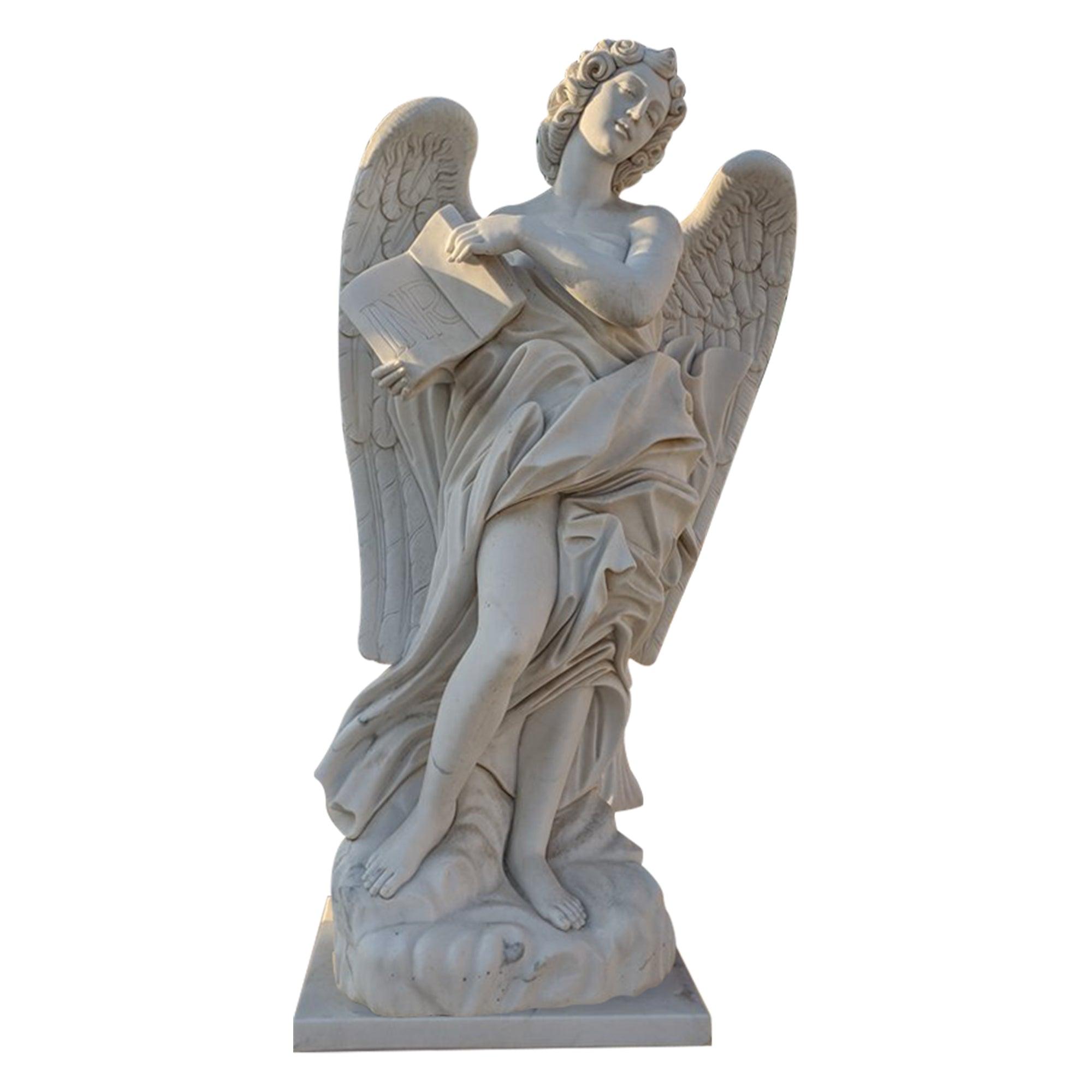 This Reading Angel Marble Statue beautifully captures a moment of serene contemplation, featuring an angel immersed in reading. With finely detailed wings, flowing robes, and a calm, reflective expression, this statue radiates peace and inspiration. Carved from high-quality white marble, it brings a sense of grace and reverence to any environment, making it a timeless piece suitable for both indoor and outdoor spaces.
