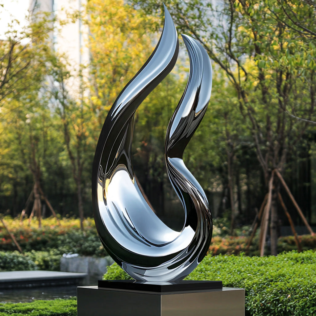 • Polished Mirror Finish: The high-gloss finish of this stainless steel sculpture enhances the reflective nature of the stainless steel, adding depth and intrigue.