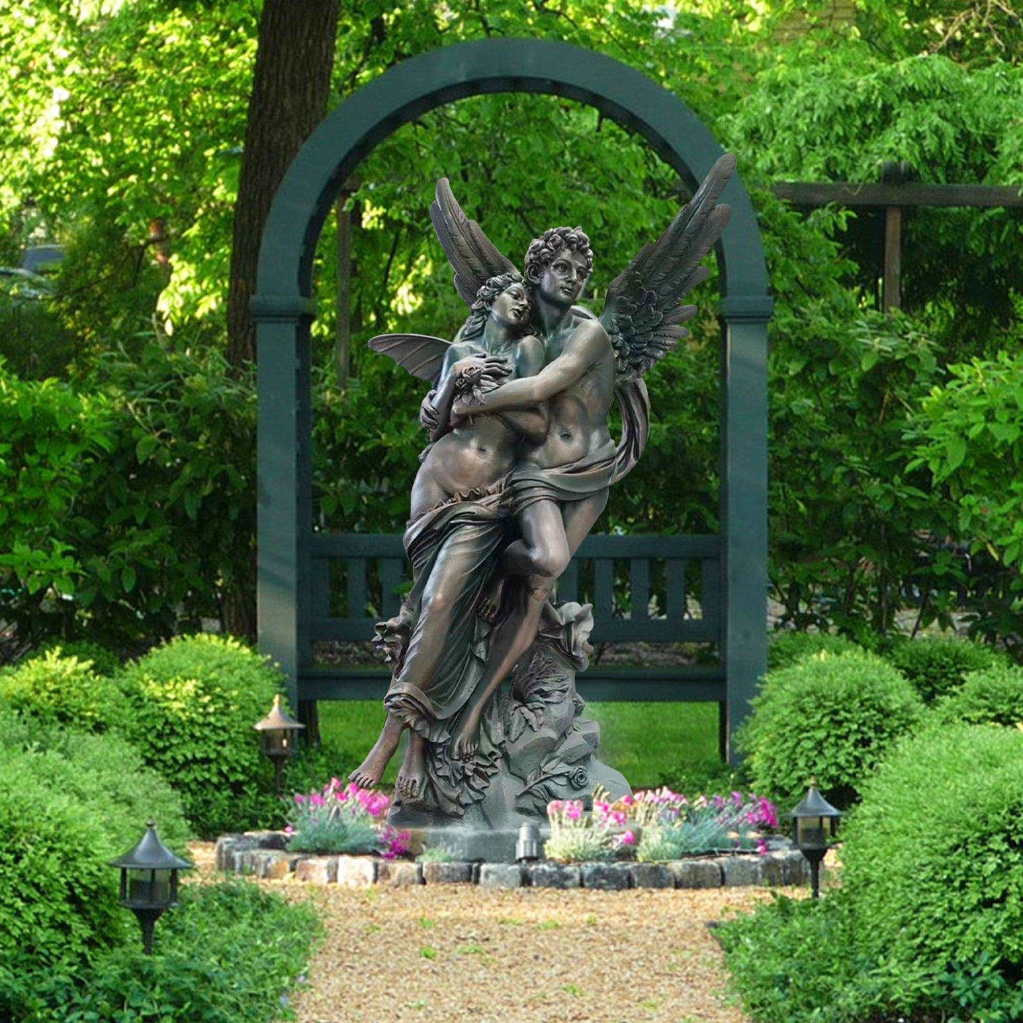 This Cupid and Psyche Embrace Fiberglass Sculpture captures the timeless romance and beauty of Greek mythology. The intricate details showcase the tender embrace between Cupid, the god of love, and Psyche, the mortal he adores, symbolizing eternal love and passion. Crafted in high-quality fiberglass with an antique bronze finish, this piece exudes a classic charm reminiscent of Renaissance art. Ideal for lovers of mythological and romantic art, it makes an elegant addition to any home, art gallery, or intimate space.