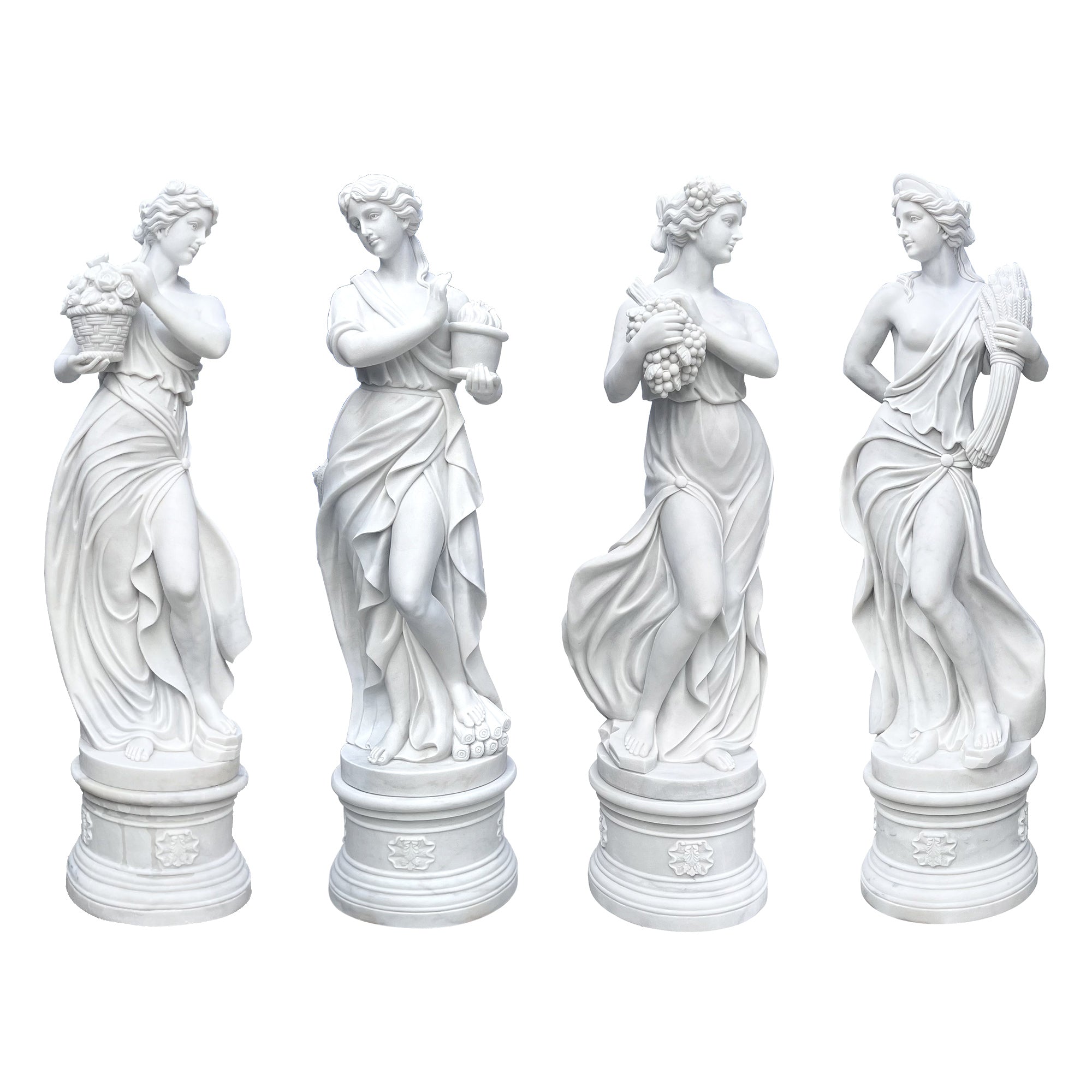 The 'Autumn' Hand-Carved Statuary Marble Greek Goddess Statue from 'The Four Seasons' collection celebrates the beauty of autumn’s harvest. This exquisitely crafted goddess statue features the Greek goddess holding a bundle of wheat, symbolizing abundance, growth, and the richness of the season. The figure is elegantly posed, with flowing robes that seem to ripple in the autumn breeze, giving a sense of movement and vitality.