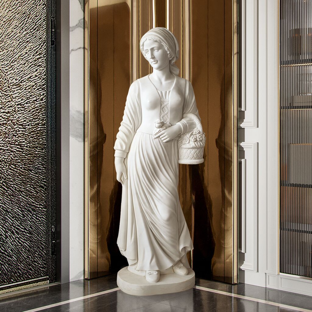 • PEGASUS Young Woman With Flower Basket On Hand Marble Statue FM-026