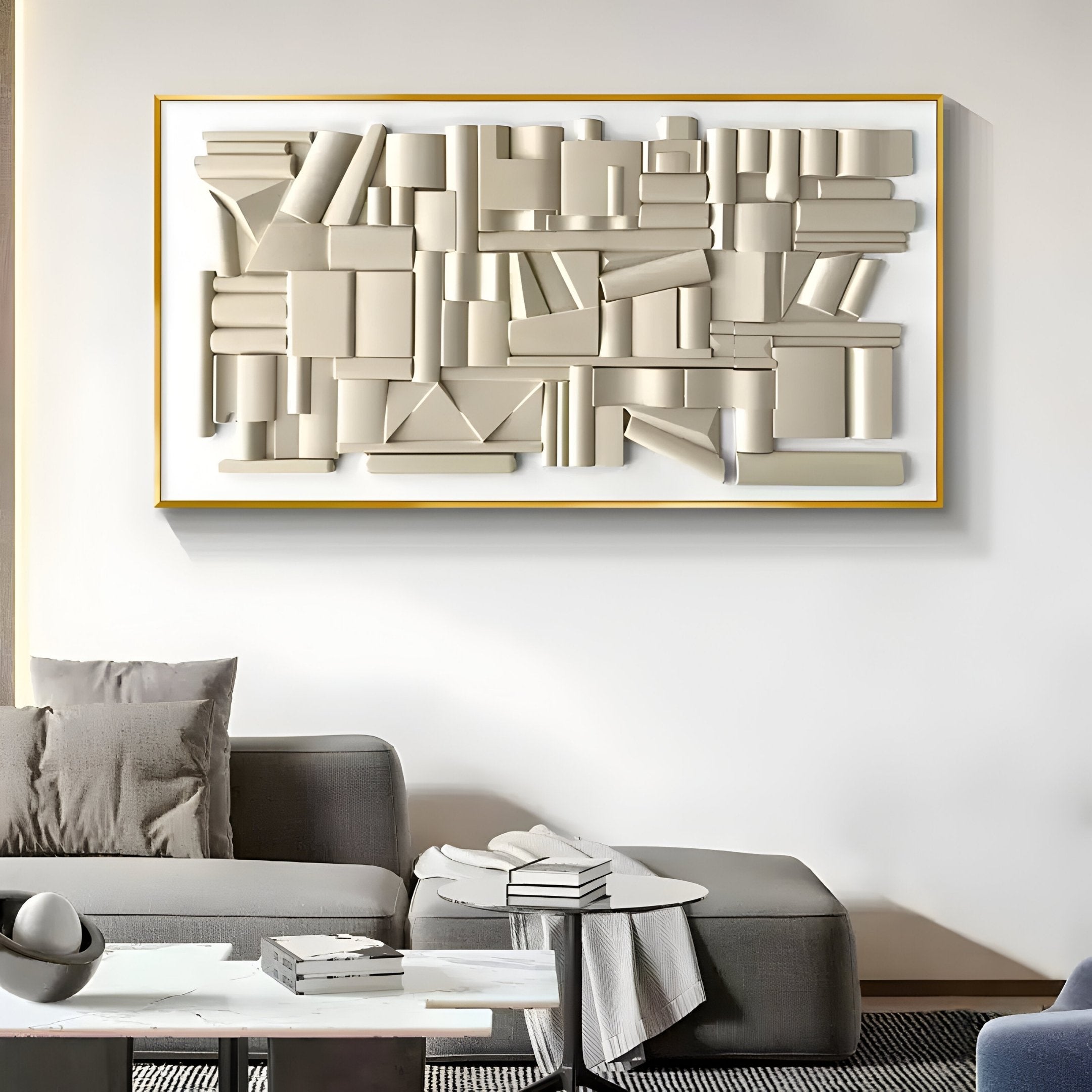 Ideal for modern and light-luxury interiors, the Forma Cream Wall Art transforms plain walls into focal points of visual interest. The layered relief design interacts beautifully with ambient light, creating dynamic shadows that shift throughout the day. Its neutral cream palette complements various colour schemes, making it a versatile addition to your space. The aluminium frame ensures durability and a polished finish, making it a lasting addition to your home or office. Whether placed in a hallway or as a centrepiece in your living space, this artwork adds texture and modern charm.