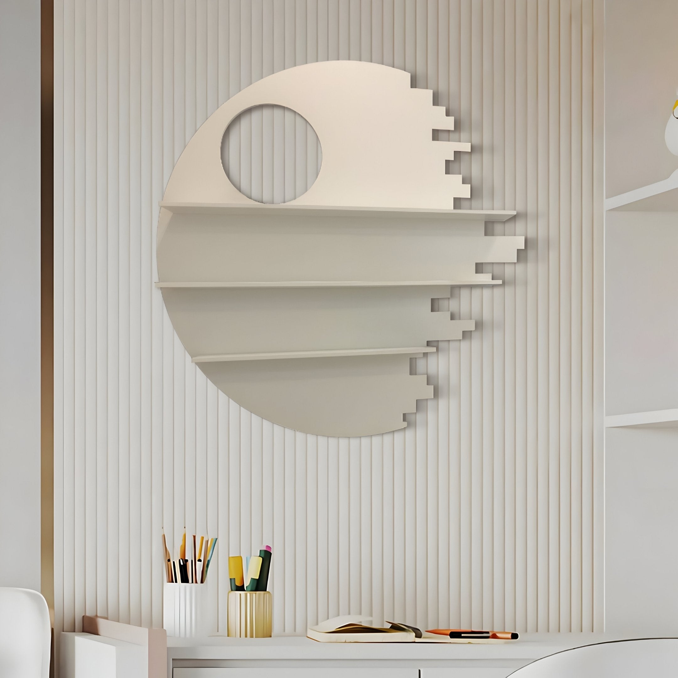 The Orbis White Geometric Multi-Tier Decorative Shelf is an innovative blend of design and practicality. Made from durable wood with a sleek matte finish, this wall-mounted shelf features a striking circular shape with a unique cut-out and geometric edges that capture attention. Its multi-tiered structure offers ample space to display your favourite books, collectibles, or small plants, keeping them neatly organised yet stylishly showcased. The minimalist white finish ensures this piece integrates effortlessly into modern interiors, serving as a seamless addition to any space. Meanwhile, its unconventional design makes it a captivating statement feature, combining utility with contemporary aesthetics.