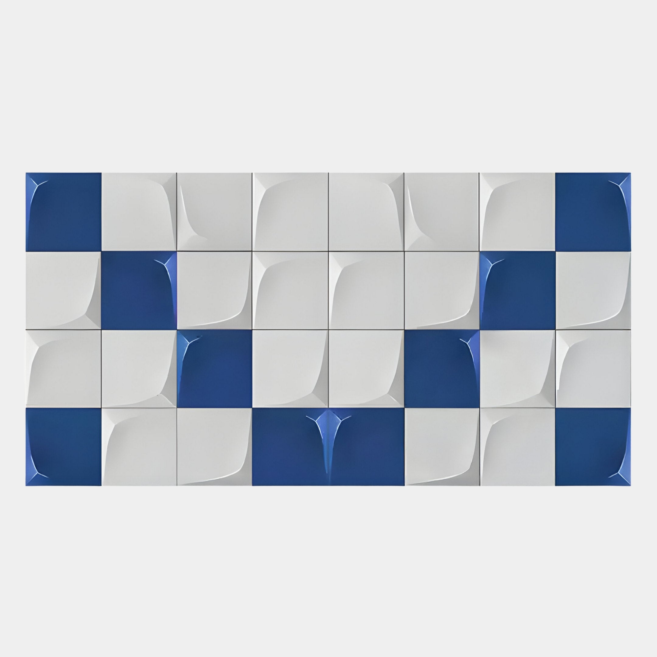 Geometrica Bold Blue & White Grid 3D Wood Relief Wall Art