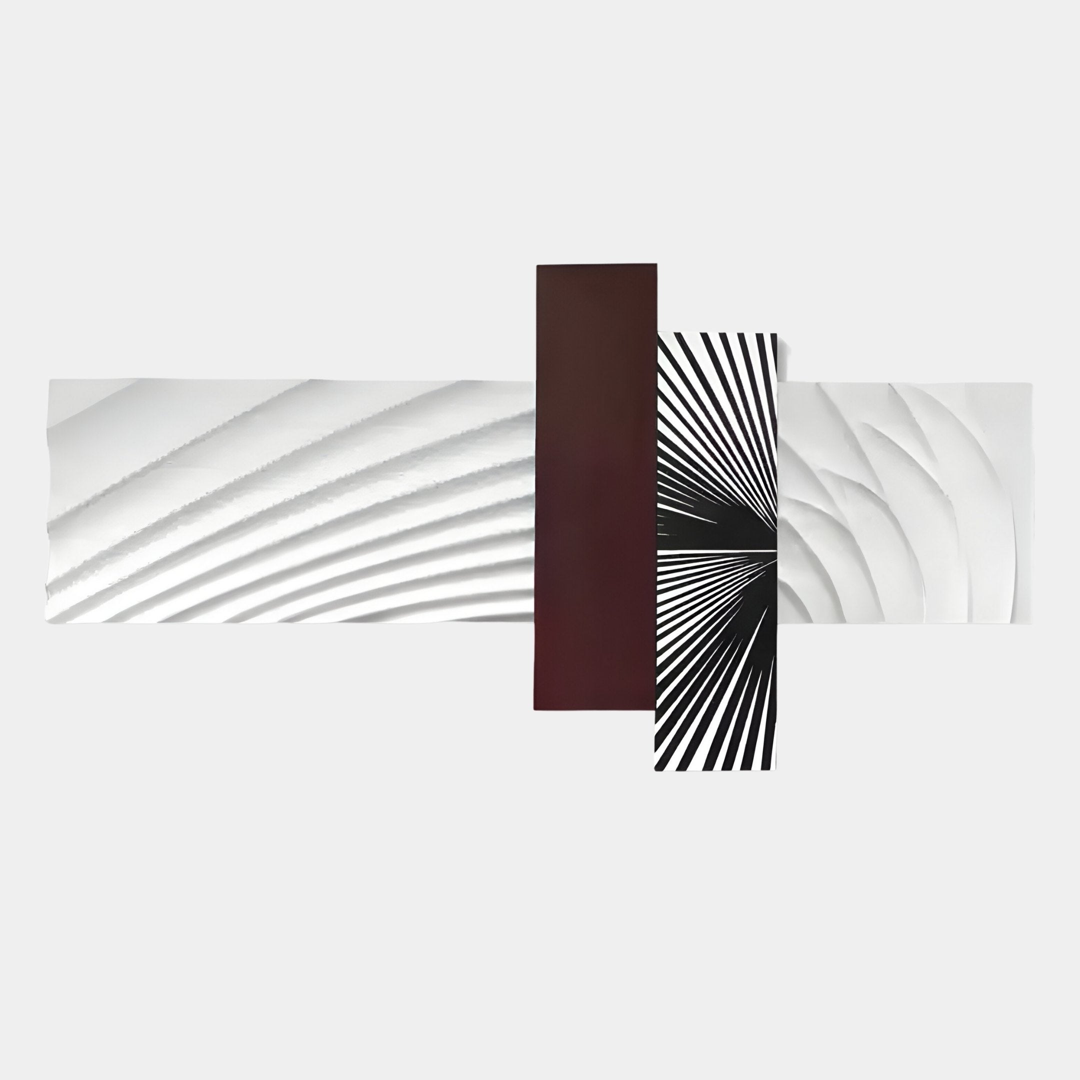 Axentra Burgundy & White Geometric Wood Relief 3D Wall Art