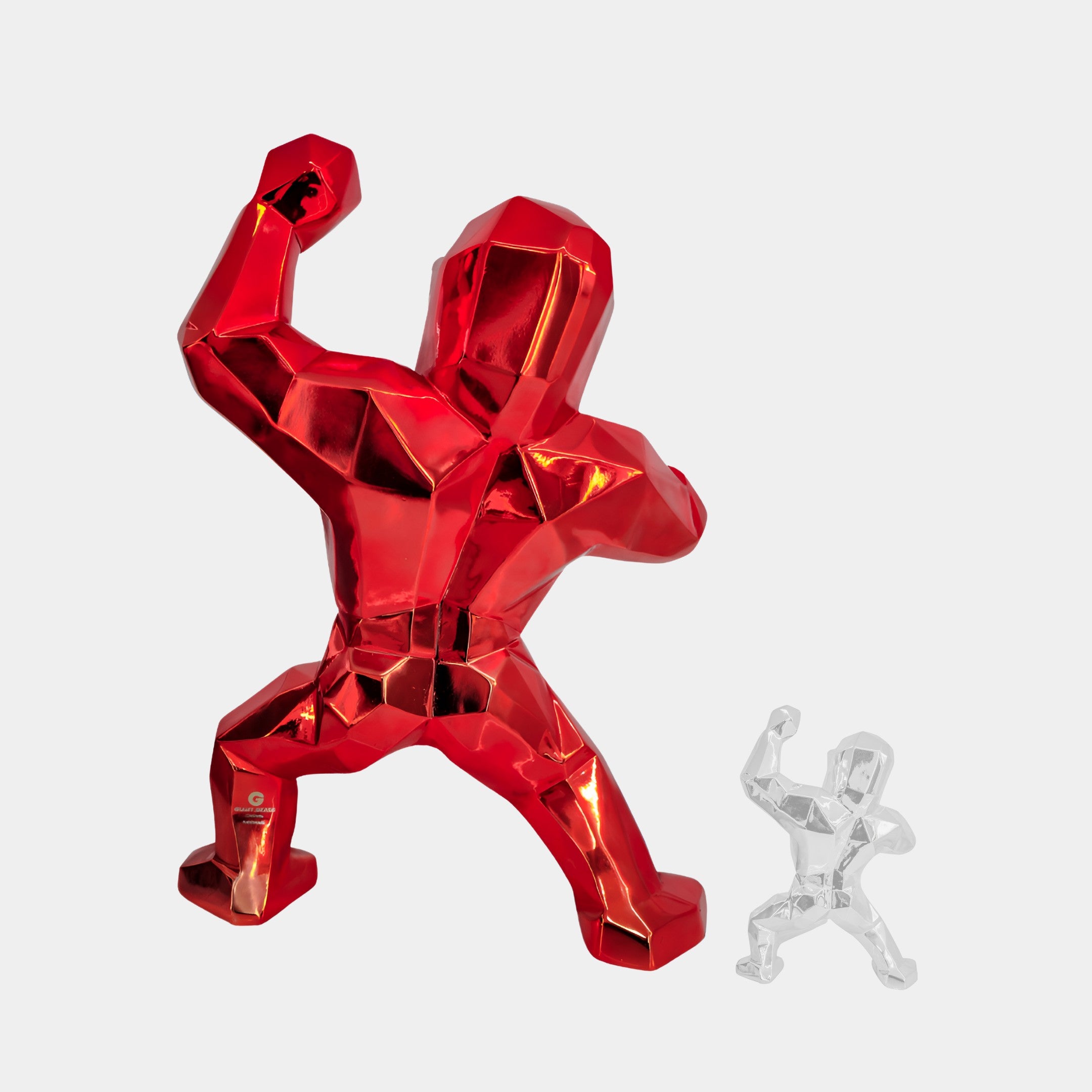 Introducing a stunning fusion of modern art and bold design, this 135cm tall gorilla sculpture captivates with its vibrant fire red electroplated finish. Crafted from high-quality resin, the sculpture showcases intricate details that bring the gorilla's powerful physique and expressive features to life. The electroplated surface adds a sleek, mirror-like sheen, enhancing the vivid red color and creating a striking visual impact. This piece embodies a perfect blend of contemporary aesthetics and artistic craftsmanship, making it a standout addition to any interior space.