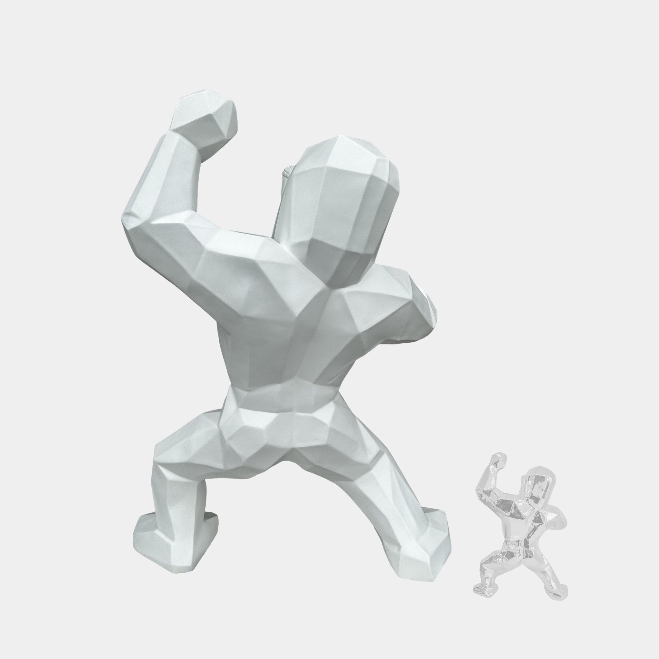 Experience the captivating presence of the Ghost White Gorilla Sculpture in 165cm, a remarkable fusion of artistry and modern design. Expertly crafted from high-quality resin and meticulously hand-painted in a pristine ghost white finish, this life-sized sculpture stands at an impressive 165cm tall. The intricate detailing, from the gorilla's expressive eyes to its powerful musculature, brings this majestic creature to life, adding a sense of dynamism and sophistication to any space. The smooth, matte white surface accentuates the sculpture's contemporary aesthetic, making it a standout addition to upscale interiors.