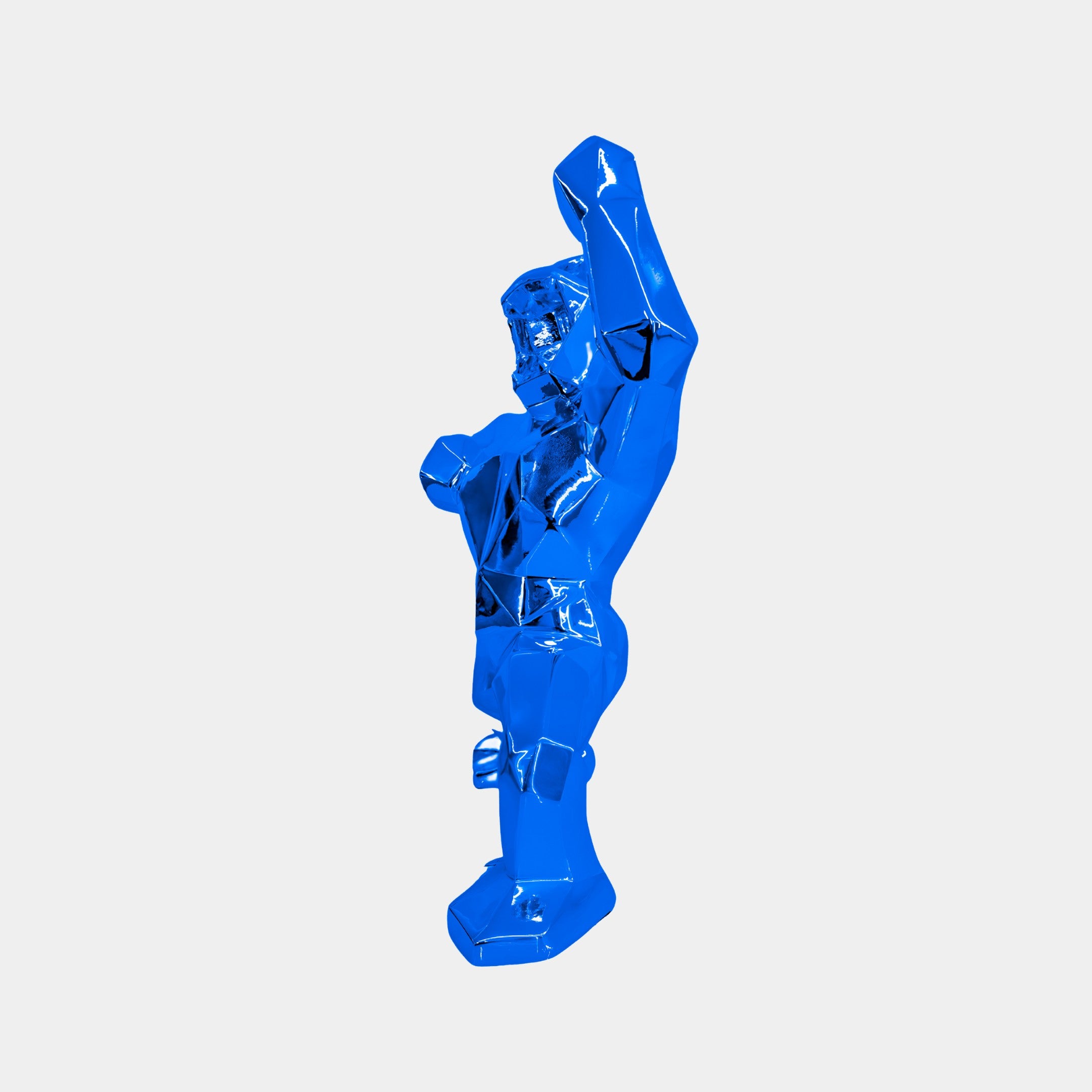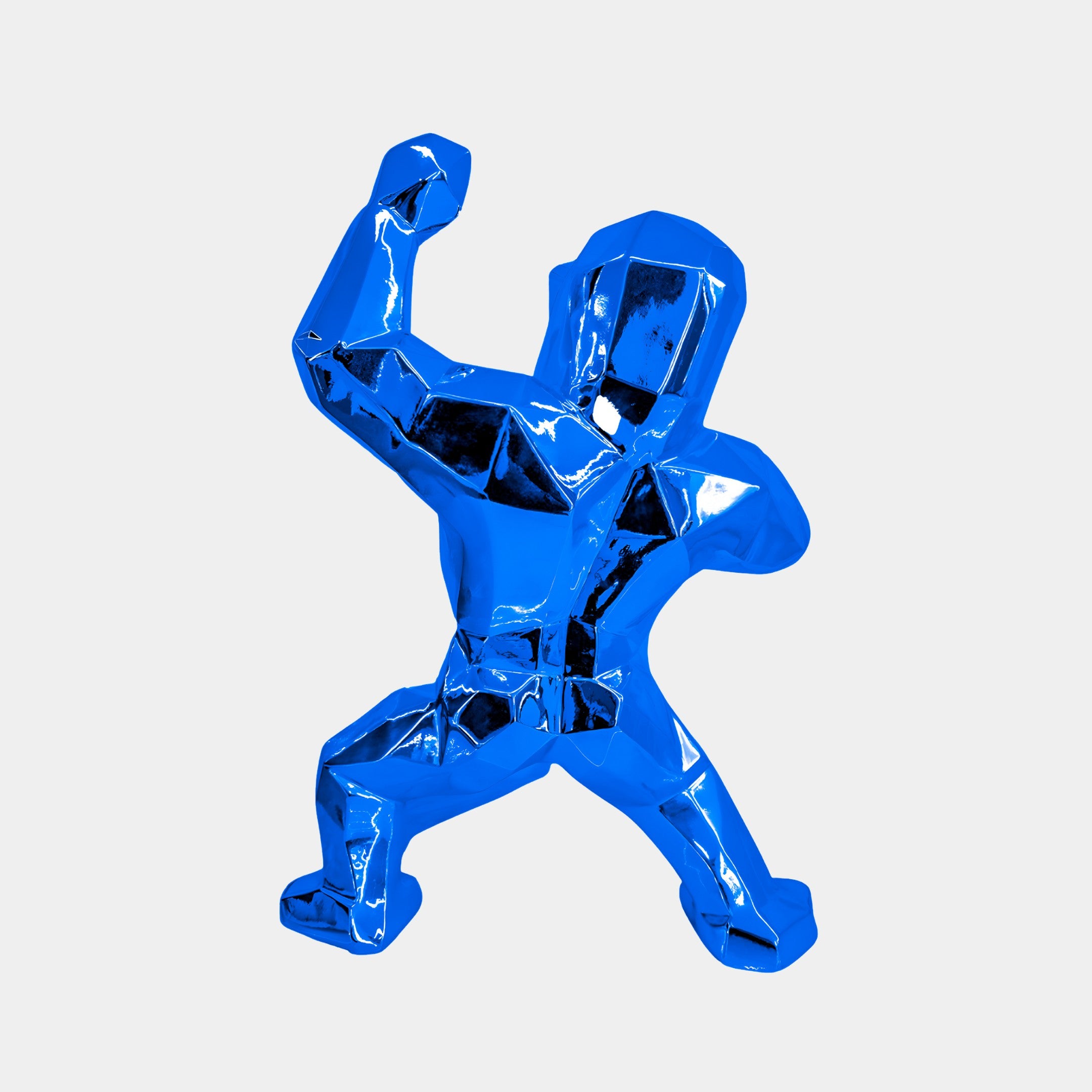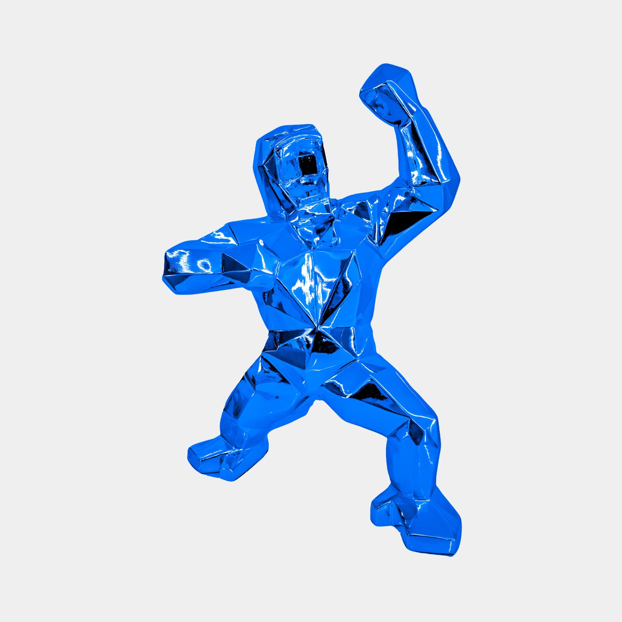 Introducing the Sapphire Blue Gorilla Sculpture in 50cm – a bold and electrifying statement piece that merges contemporary design with raw, primal energy. This stunning sculpture showcases a dynamic gorilla pose, infused with motion and power, all wrapped in a brilliant sapphire blue finish. The faceted surface and muscular form lend a geometric, modern touch, while the high-gloss polish enhances its visual impact. Crafted from high-quality resin and standing at 50cm tall, this piece is both durable and striking.