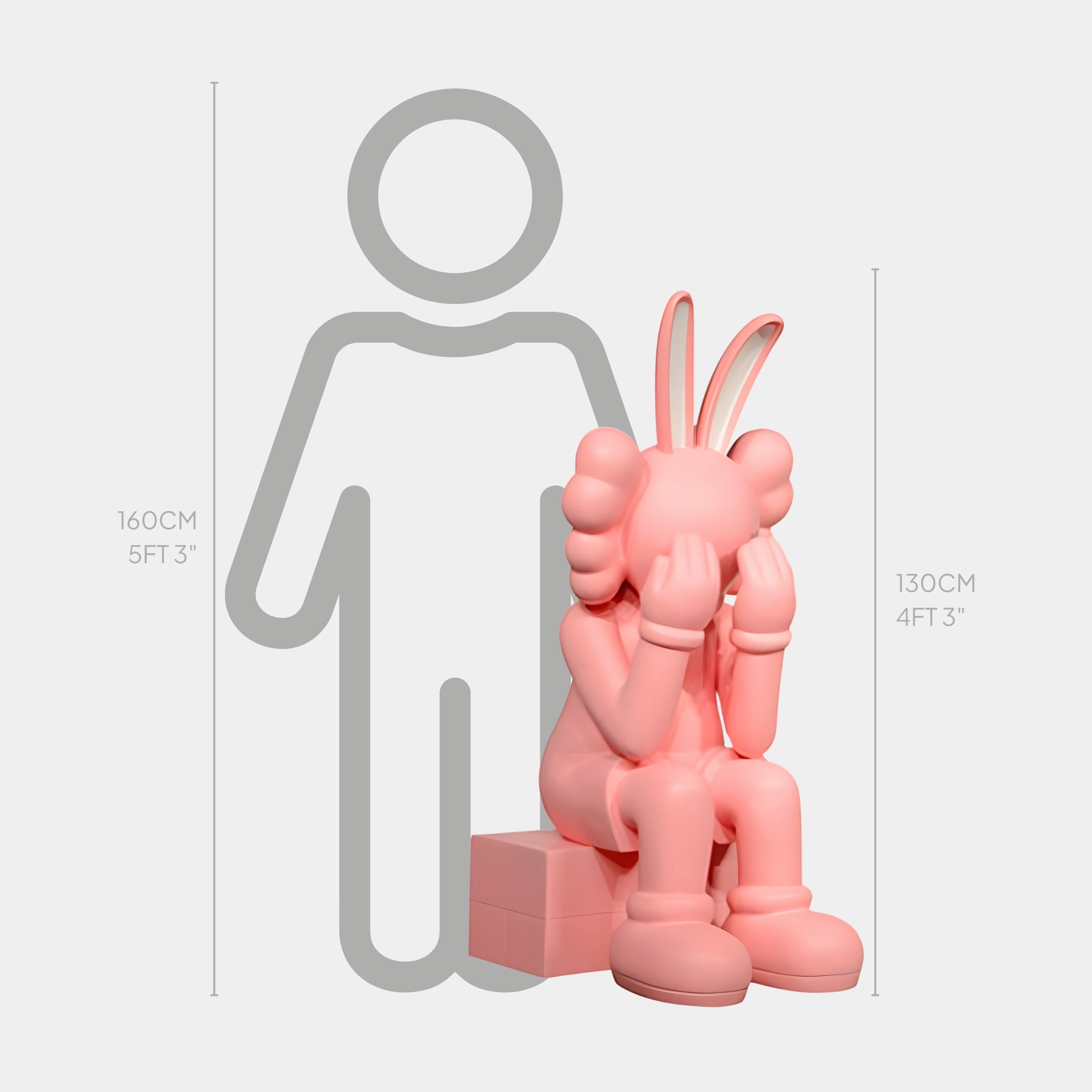 Coral Pink Iconify Melancholy Rabbit Sitting Sculpture - 130cm