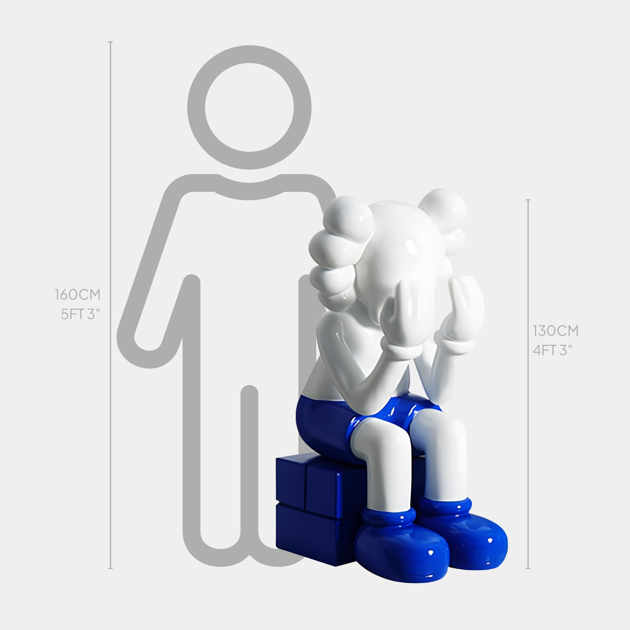 White & Blue Iconify Melancholy Sitting Sculpture - 130cm