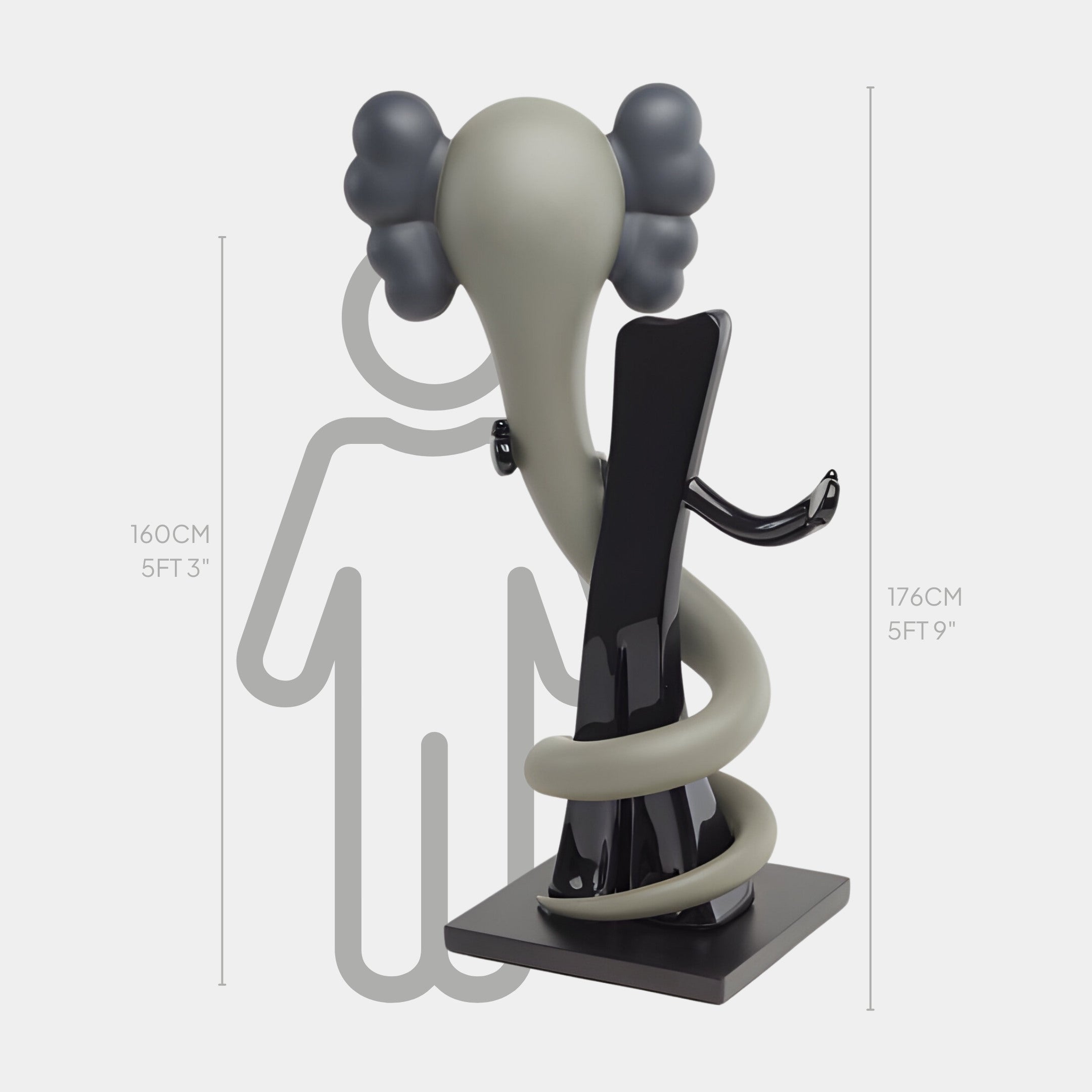 Understated yet striking, the Ash Grey Iconify Snake Sculpture – 176cm offers a captivating fusion of modern design and subtle drama. Cast from durable resin, this impressive piece features a gracefully elongated figure encircled by a smoothly winding serpent in a muted grey hue. Standing at 176cm tall, it makes a statement in any setting - whether illuminating a sophisticated living room, accentuating a minimalist office, or anchoring a contemporary gallery space.