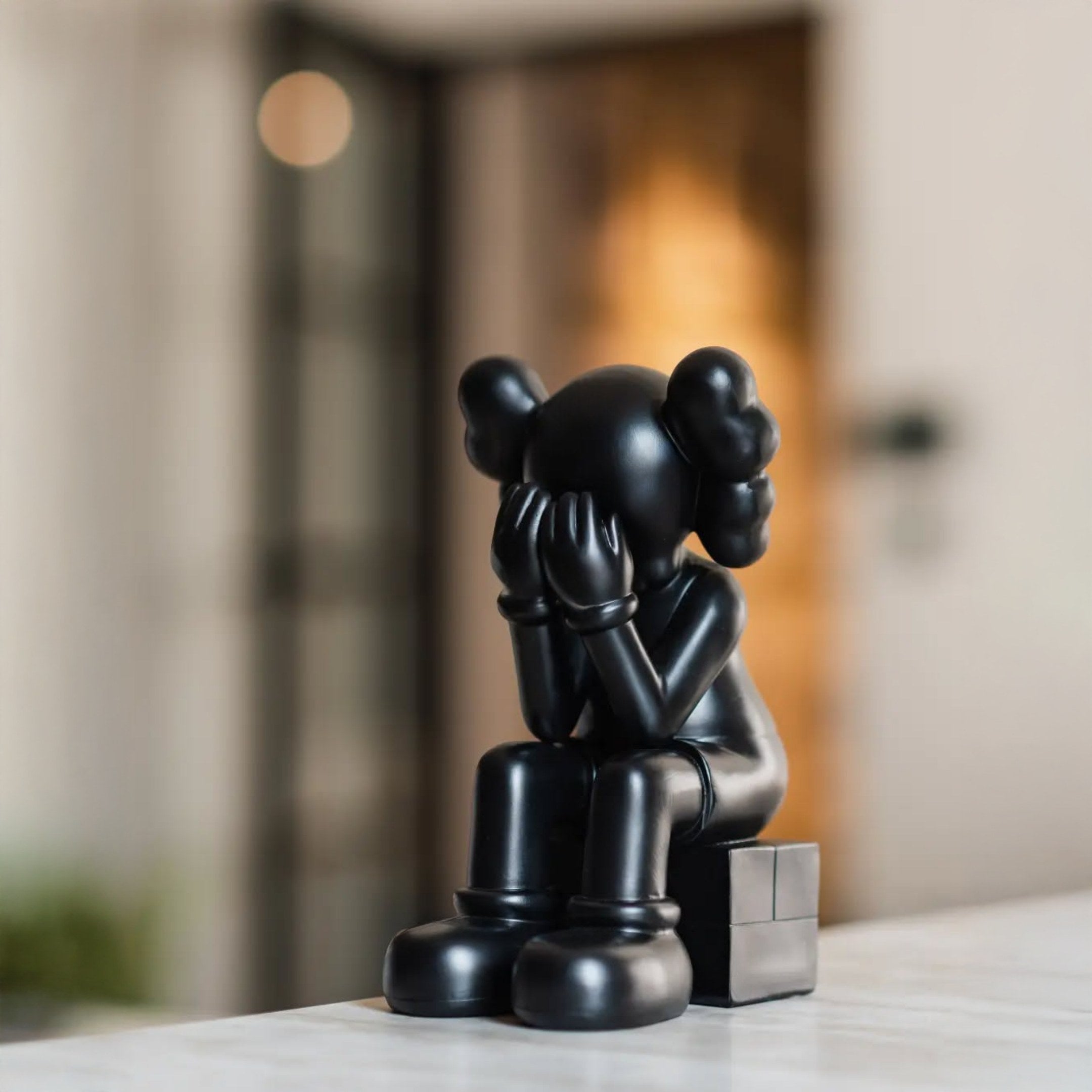 Crafted for longevity, the Midnight Black Iconify Melancholy Sitting Figure pairs well with both stark white settings and vibrant color palettes. The durable polyvinyl construction maintains its visual impact over time, while the softly rounded ears lend a playful nod to pop-art influences. Set it in a corner with warm, directional lighting to highlight its silhouette, or align it against a vividly painted wall for a striking contrast. Ideal for eclectic art collectors, design enthusiasts, or anyone seeking to make a bold statement, this sculpture delivers a timeless reminder that the quietest moments often harbor the most profound insights.