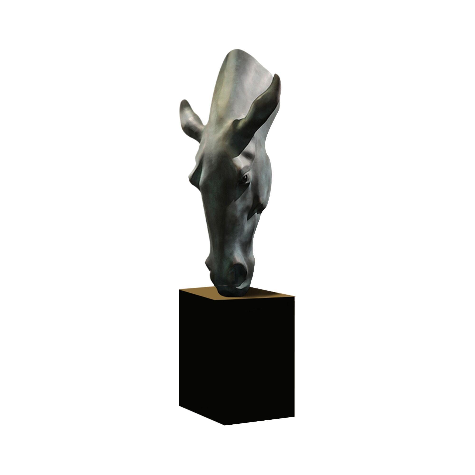 The Abstract Bronze Horse Head Sculpture is a stunning blend of modern art and timeless elegance. Its sleek, abstract design captures the spirit and grace of the horse, symbolizing freedom, strength, and nobility. The upward movement and elongated features of the sculpture represent a sense of aspiration and progress, making it an inspiring centerpiece for any space. The patina grey finish lends an air of antiquity and depth, enhancing its expressive form and adding a sophisticated touch to hotel lobbies, corporate offices, or luxury residences. This sculpture creates an atmosphere of refinement and inspiration, paying tribute to the timeless beauty and power of the horse.
