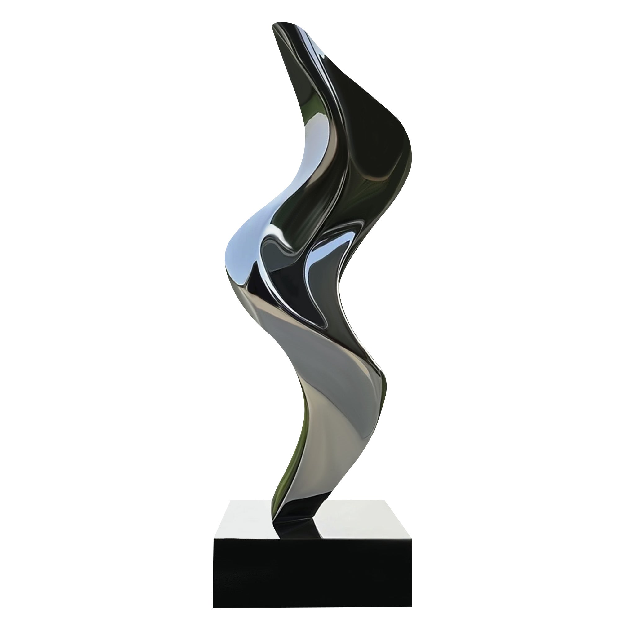 This Elegant Abstract Stainless Steel Sculpture showcases a sleek, fluid form that flows gracefully, creating a sense of movement and harmony. The mirror-polished surface reflects light beautifully, adding a dynamic visual element to any environment. Crafted from high-quality #304 stainless steel, this sculpture is both durable and resistant to the elements, making it suitable for indoor or outdoor display. Perfect for modern interiors or as a sophisticated outdoor centerpiece, this piece brings an artistic touch to any space.