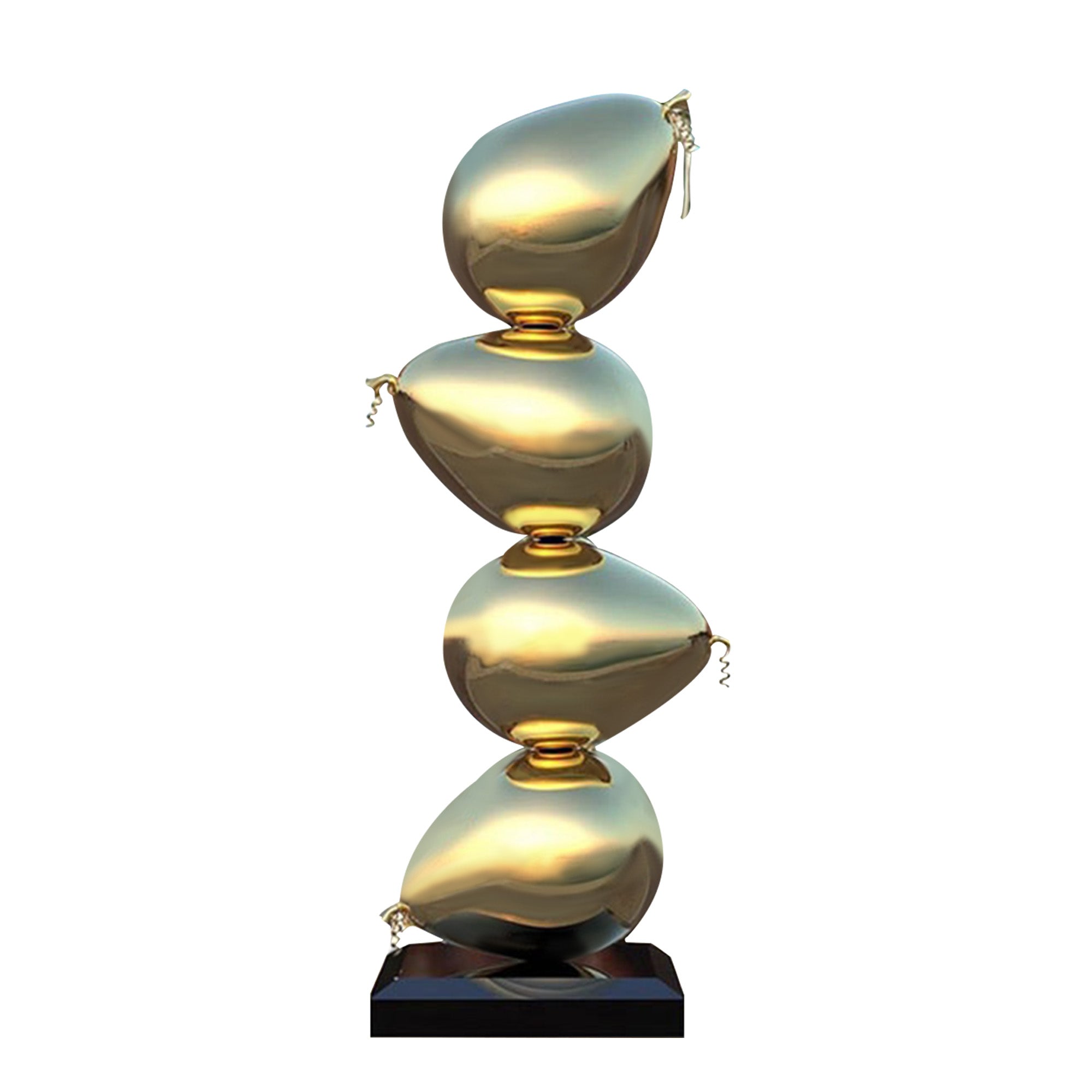 The?Stainless Steel Stacked Balloon Sculpture Indoor Ornament merges the fleeting nature of balloons with the enduring strength of stainless steel, creating a striking contrast between fragility and durability. The stacked balloons, appearing to defy gravity, evoke a sense of joy and childlike wonder, while the gold finish adds luxury and refinement.