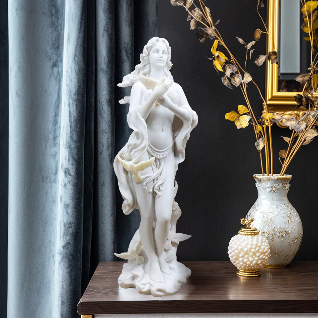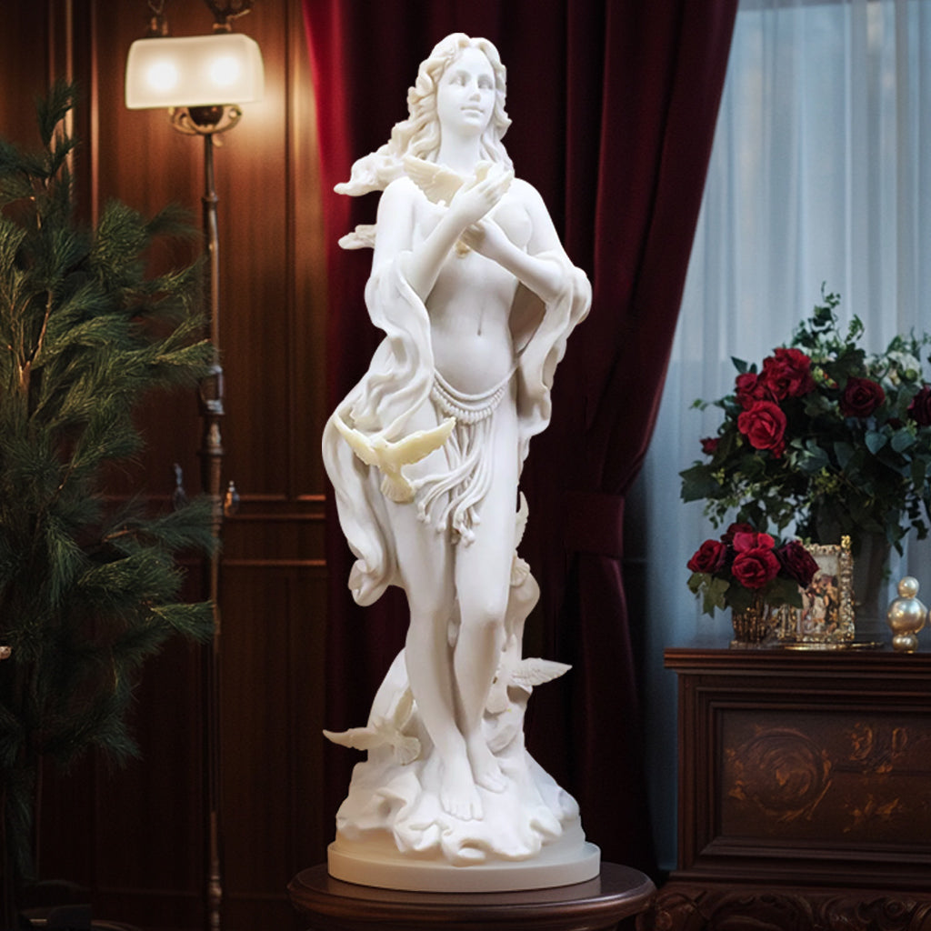 Aphrodite with Doves Figurine Sculpture Greek Goddess of Beauty Venus Marble Statue FM-062